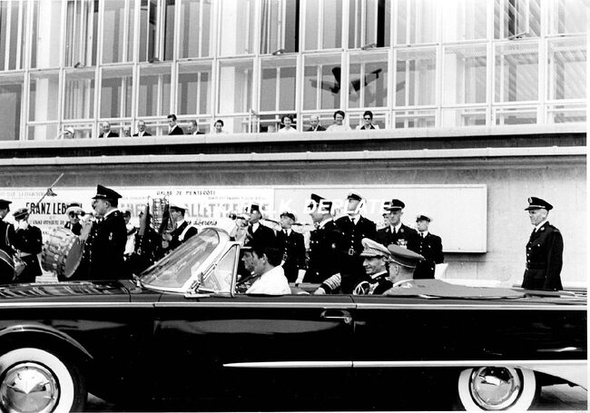 Formaat : 13 x 18 cm. - Bij zijn bezoek aan en lunch in het Kursaal, de sjah op weg naar het Monument der Zeelieden. Hier aan "Petit Nice".