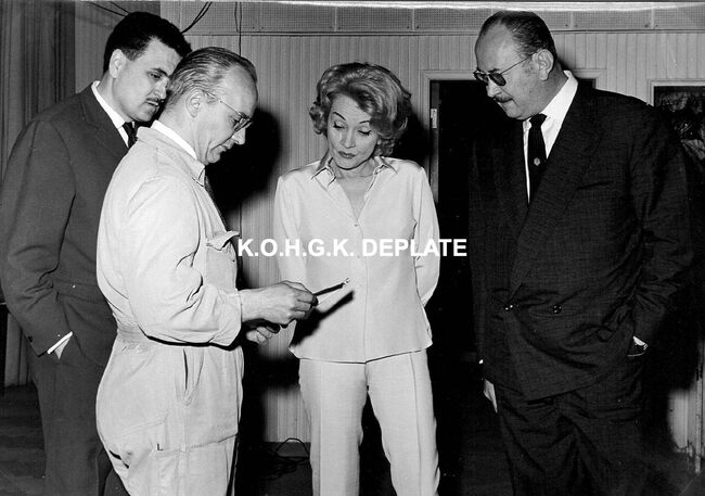 Formaat : 12 x 17 cm. - Marlene Dietrich in gezelschap van o.a. Roger De Ramée, directeur van de Kursaal (rechts).