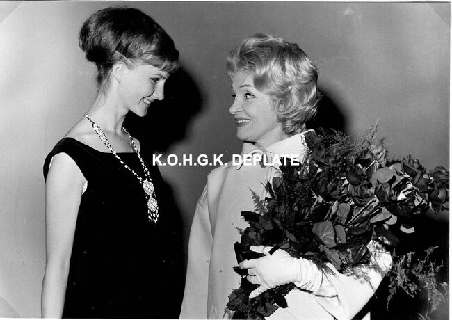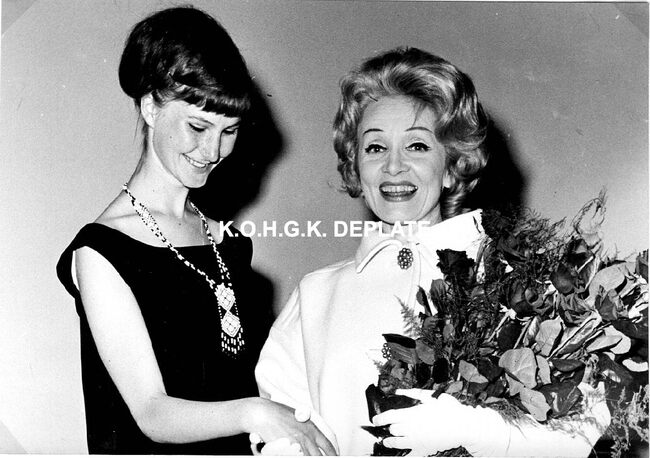 Formaat : 12 x 17 cm. - Marlene Dietrich in het gezelschap van Karla Wildschut.