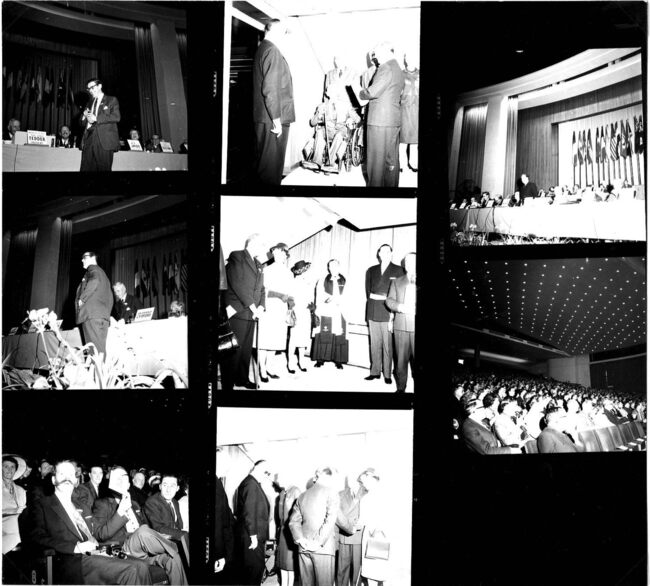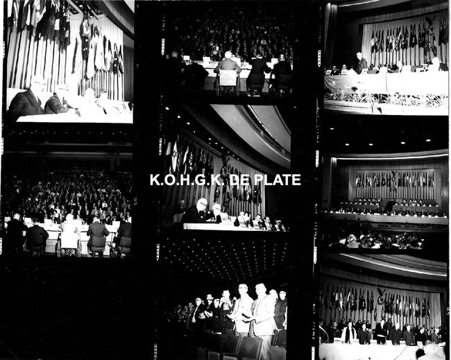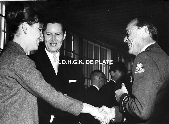 Formaat : 12,5 x 17 cm. - Ook aanwezig Prins Bernhard de Nederlanden. In het midden, burgemeester Jan Piers.