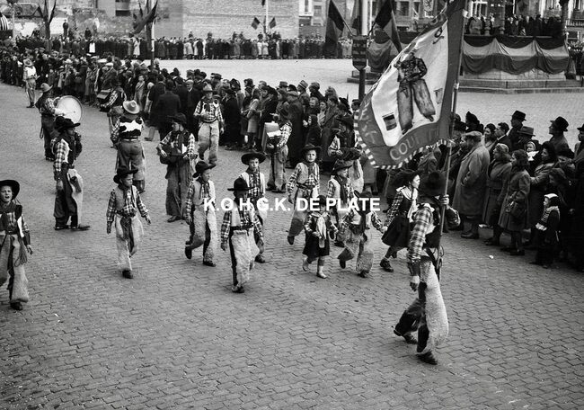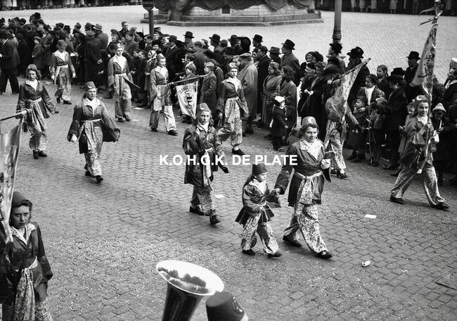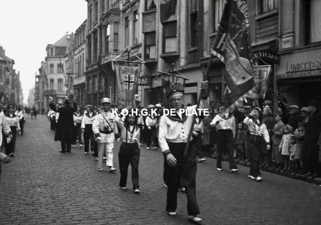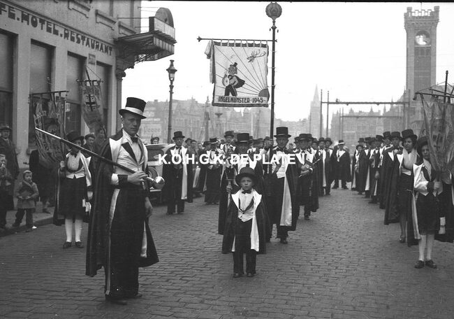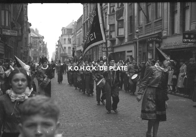 Negatief : 4 x 6,5 cm. - Hier met hun muziek in de Kapellestraat