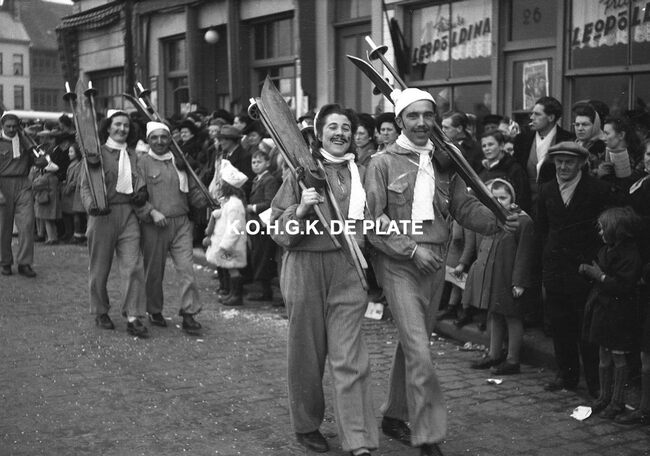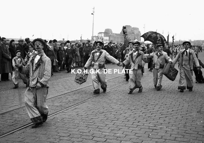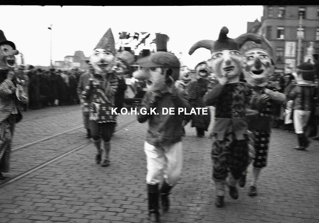 Negatief : 4 x 6,5 cm. - De carnavalgroep "De Brugse Zoo" in de Kapellestraat