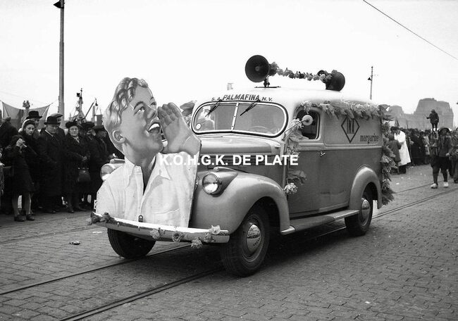 Negatief : 4 x 6,5 cm. - Auto van de n.v. Palmafina in de publiciteitskaravaan op de Visserskaai