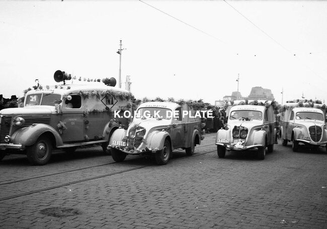 Negatief : 4 x 6,5 cm. - De auto's van de firma Printania in de publiciteitskaravaan op de Visserskaai