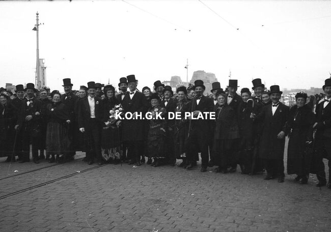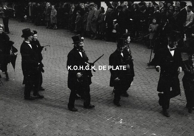 Negatief : 4 x 6,5 cm. - De leden van de spaarkas "Ons Vermaak", uit Café Fientje Keters, vormden jaren naeen de bekendste folkloregroep op het "Sas" : "Het Huwelijk van Paul en Louise". De…