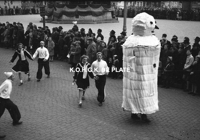 Negatief : 4 x 6,5 cm. - Veel volk op het Wapenplein en in de Kapellestraat (rechtdoor) ter gelegenheid van de halfvastenstoet