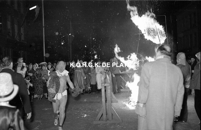 Negatief : 6 x 9 cm. - Verbranden van de pop na afloop van de stoet