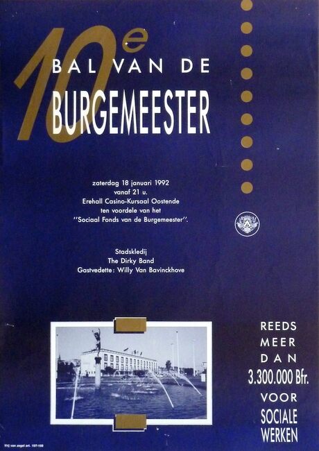 Affiche : 10de Bal van de Burgemeester. Casino-Kursaal Oostende. 18 januari 1992.