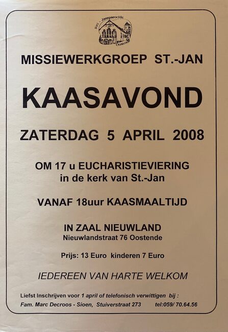 Affiche : Missiewerkgroep St.-Jan. Kaasavond. Zaal Nieuwland. 05/04/2008