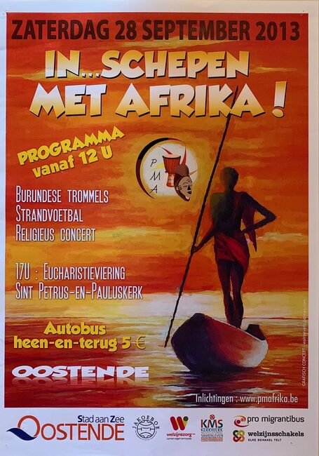 Formaat : 42 x 30 cm. - Pràgramma vanaf 12 u : Burundese trommels, strandvoetbal, religieus concert. 17 u : Eucharistieviering Sint Petrus en Pauluskerk