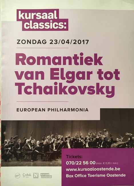 Affiche : European Philharmonia. Kursaal Classsics : Romantiek van Elgar tot Tschaikovsky. Kursaal Oostende 23/04/2017