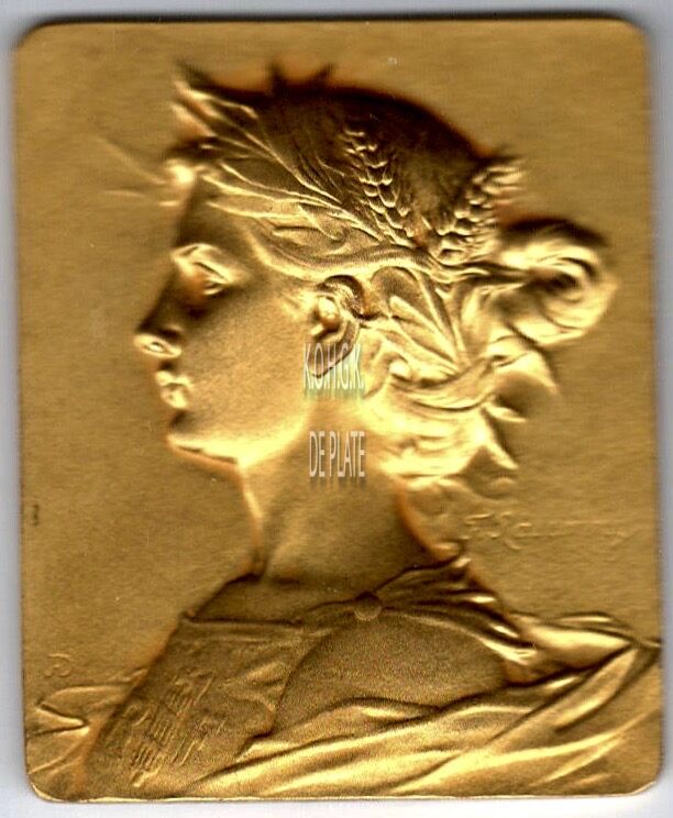 Op de voorzijde :  centraal een vrouwenbuste in profiel naar links gericht met korenhalmen in het haard, in een romeins gewaad met een afbeelding op de voorzijde