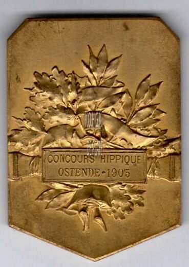 Op de keerzijde : een tuil van eiken- en laurierbladeren, op een badenrol erboven CONCOURS HIPPIQUE / OSTENDE 1905