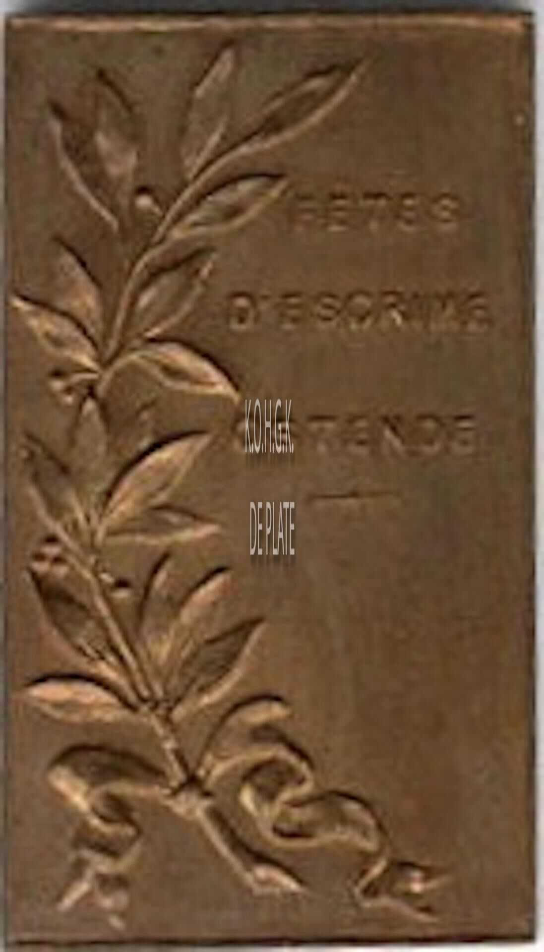 Op de keerzijde : links een lauriertak, boven horizontaal FÊTES / D’ESCRIME / OSTENDE _._