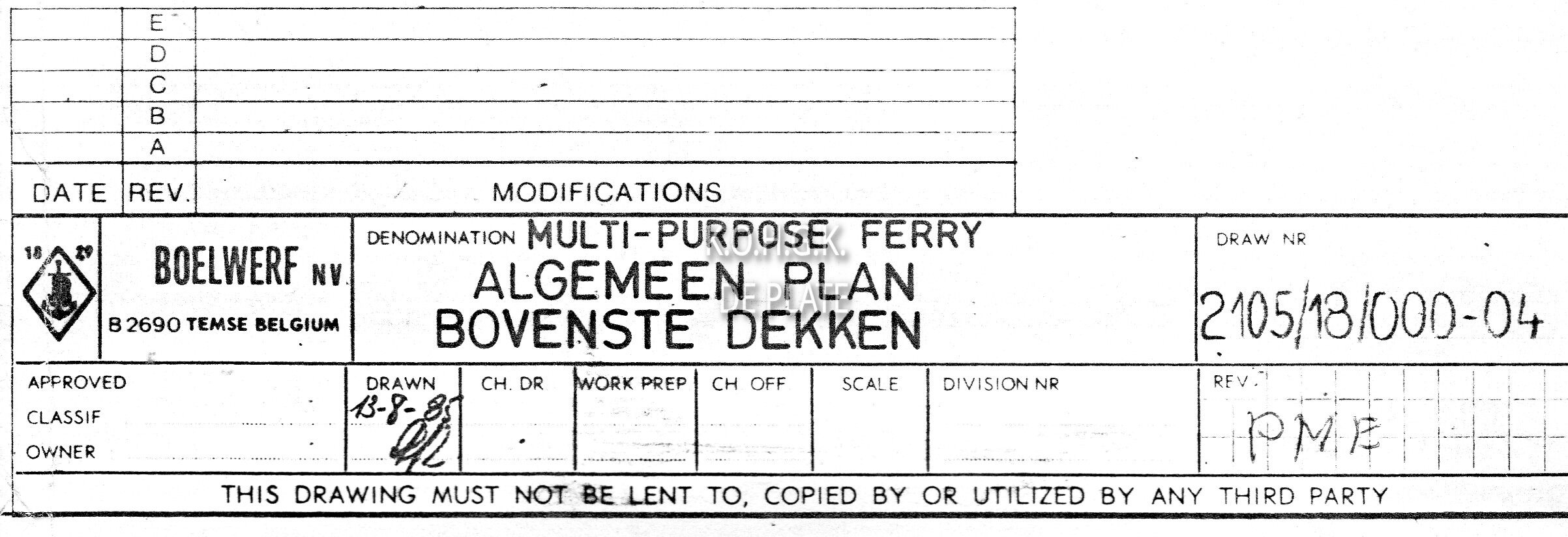 Plan multi-purpose ferry . Algemeen plan bovenste dekken nr 2105/18/000-4 Ombouw : "Prinses Maria-Esmeralda"