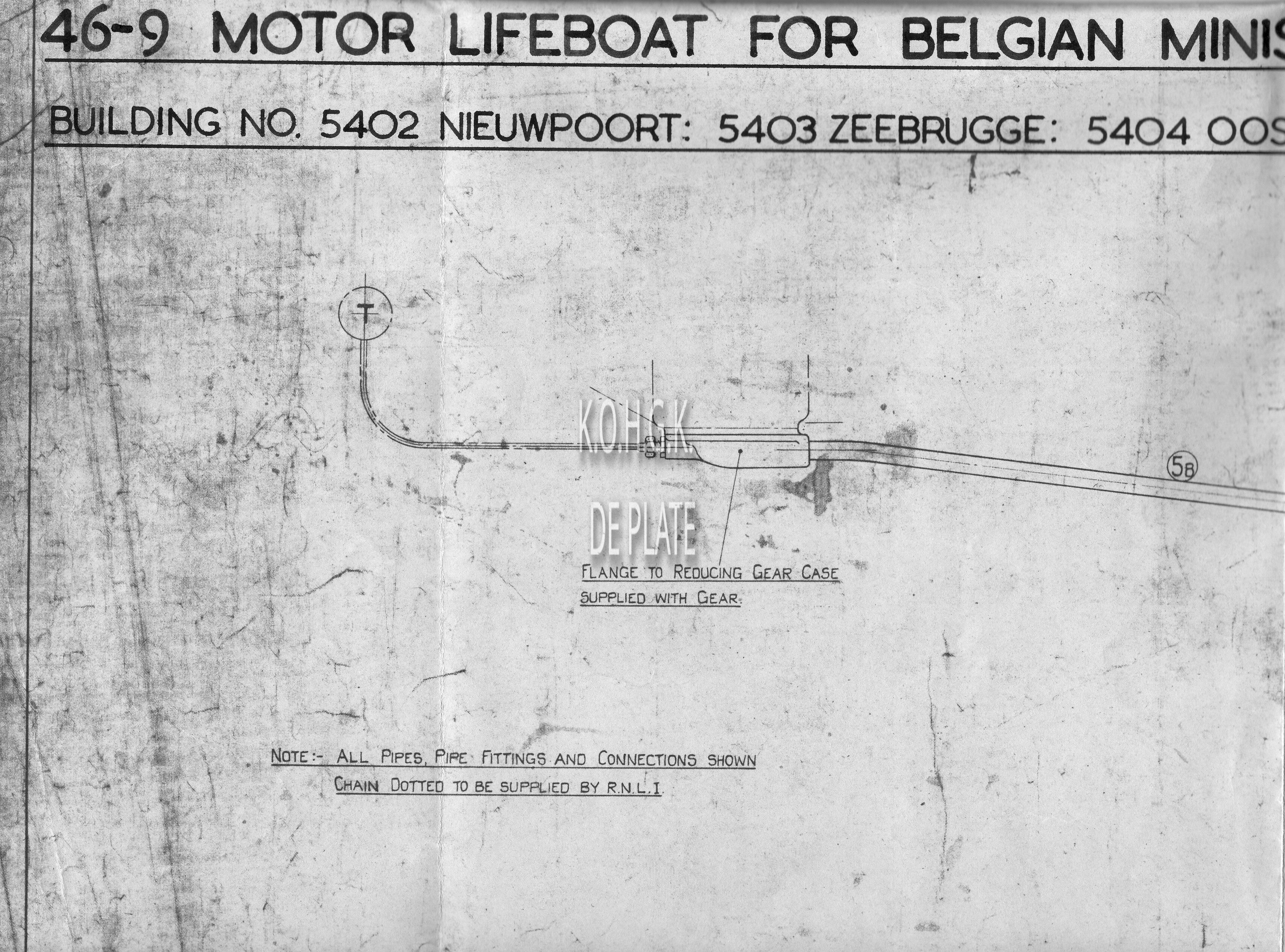 Plan V.E. 860.192. Motor lifeboat for Belgian ministry of marine. Diagrammatical arrgt. of wateroil fuel;grease & vent pipes