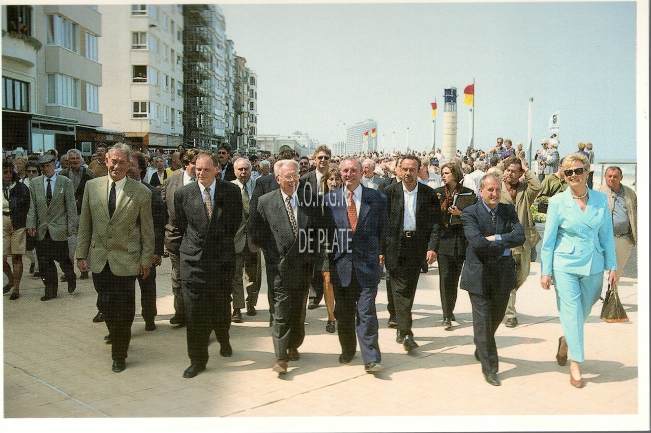 Omschrijving Tropic T 80. - Officiële heropening van het vernieuwde gedeelte van de Albert I-promenade op 04/07/1998. Feestelijk ingewandeld door diverse prominenten Trefwoorden POSTKAARTEN TROPIC ALBERT I PROMENADE VANDECASTEELE JEAN (BURGEMEESTER) BALDEWIJNS EDDY (MINISTER) OPENBARE UURWERKEN TULPIN EDDY (LERAAR POLITICUS) LABENS WILLY (POLITICUS) PLECHTIGHEDEN Plaatskenmerk FOTOARCHIEF 202 D1 TROPIC MAP 1 Inventarisnummers 2011/2100 04/ 07/ 1998 Collectie Fotoarchief De Plate Herkomst AANKOOP Uitgever Photo Tropic Oostende Print
