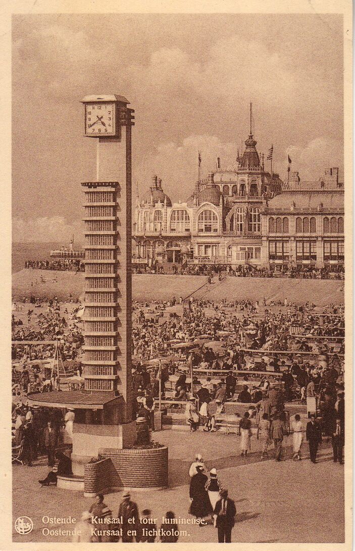 Albert Dohmen 140. - Ostende - La plage à marée haute. Ostend - The sands at high flood. Het groot strand en iedereen zit nu dicht bijeen. Kinderen bouwen nog vlug een fort (zandkasteel) tegen het opkomend water. De Zeedijk, met links Hôtel de l'Océan, Hôtel de La Plage (met vlaggen), Hôtel Beau Rivage, Splendid Hôtel.