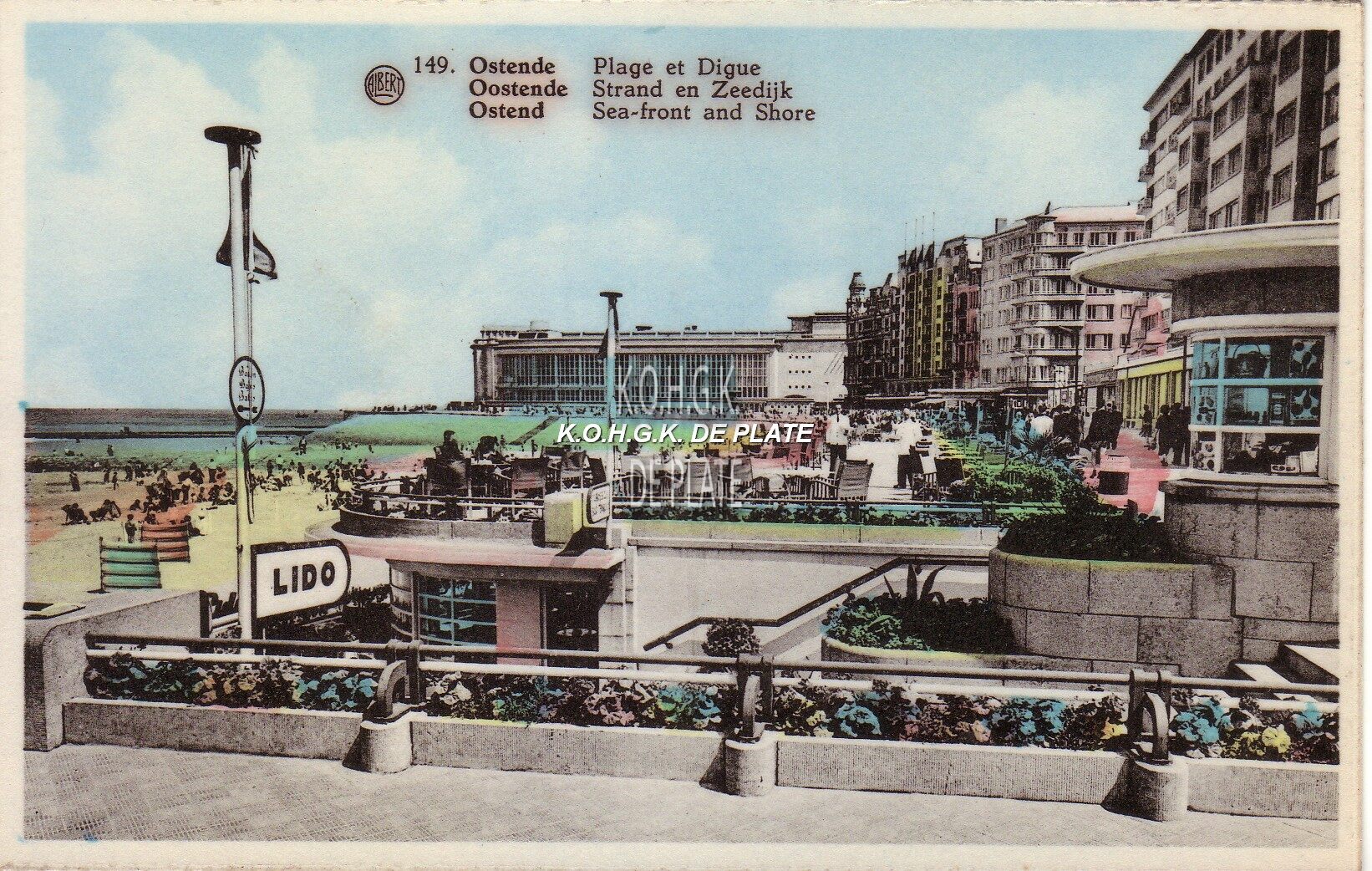 Albert, nr. 149. - Plage et digue. Strand en zeedijk. Sea-front and shore. Detail van de toegang tot de badinstallaties onder de Albert I-promenade. Op het einde, de westgevel van het vierde Kursaal