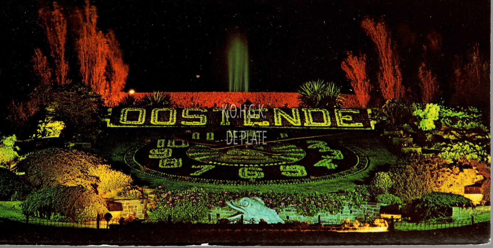 Postkaart : Bloemenuurwerk bij nacht