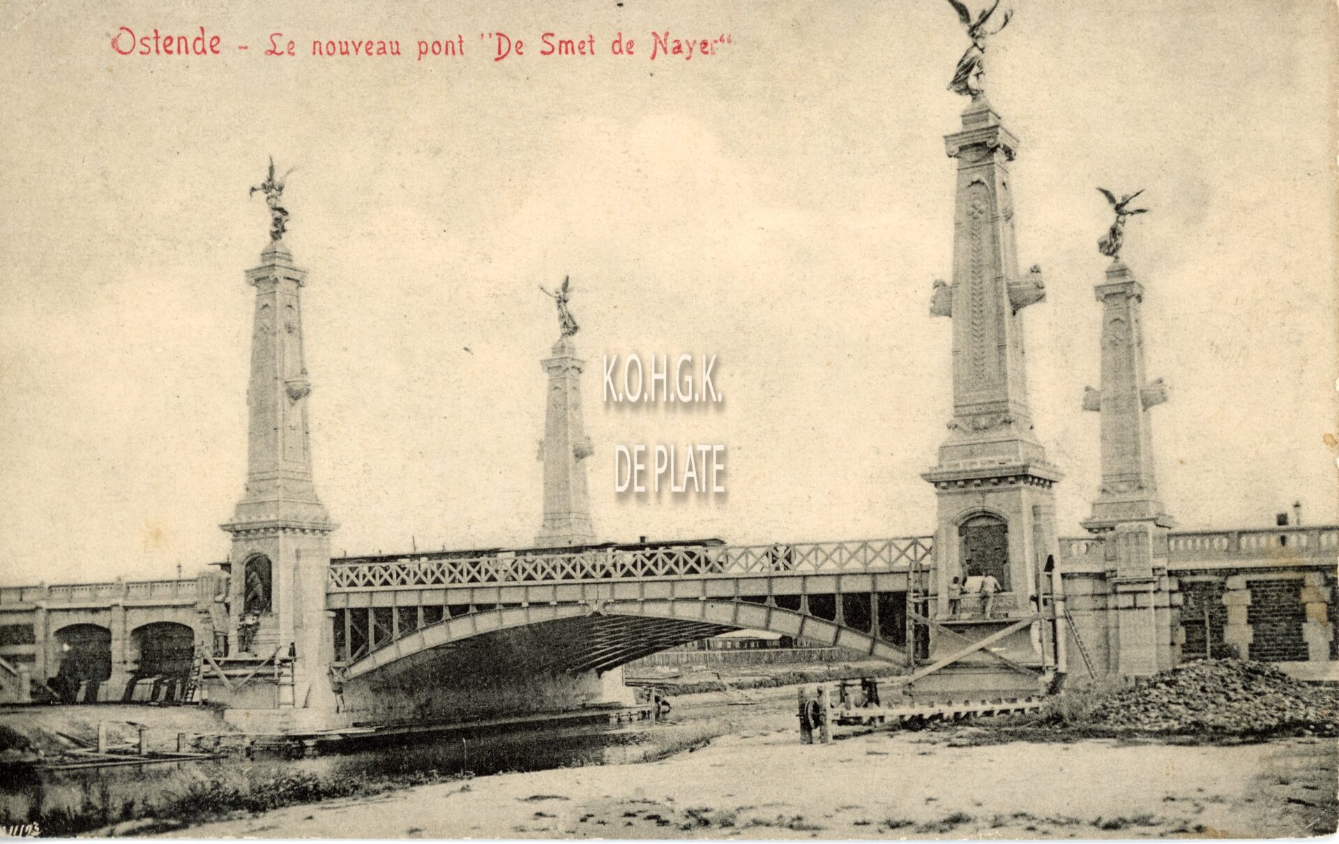De Graaf de Smet de Naeyerbrug ingehuldigd door Koning Leopold II in 1905. Vaste brug over het inmiddels verdwenen afleidingskanaal. De bronzen naakte engelenbeelden van J. Dillens en K. De Kesel werden in de Eerste Wereldoorlog door de Duitse bezetter gestolen en omgesmolten.
