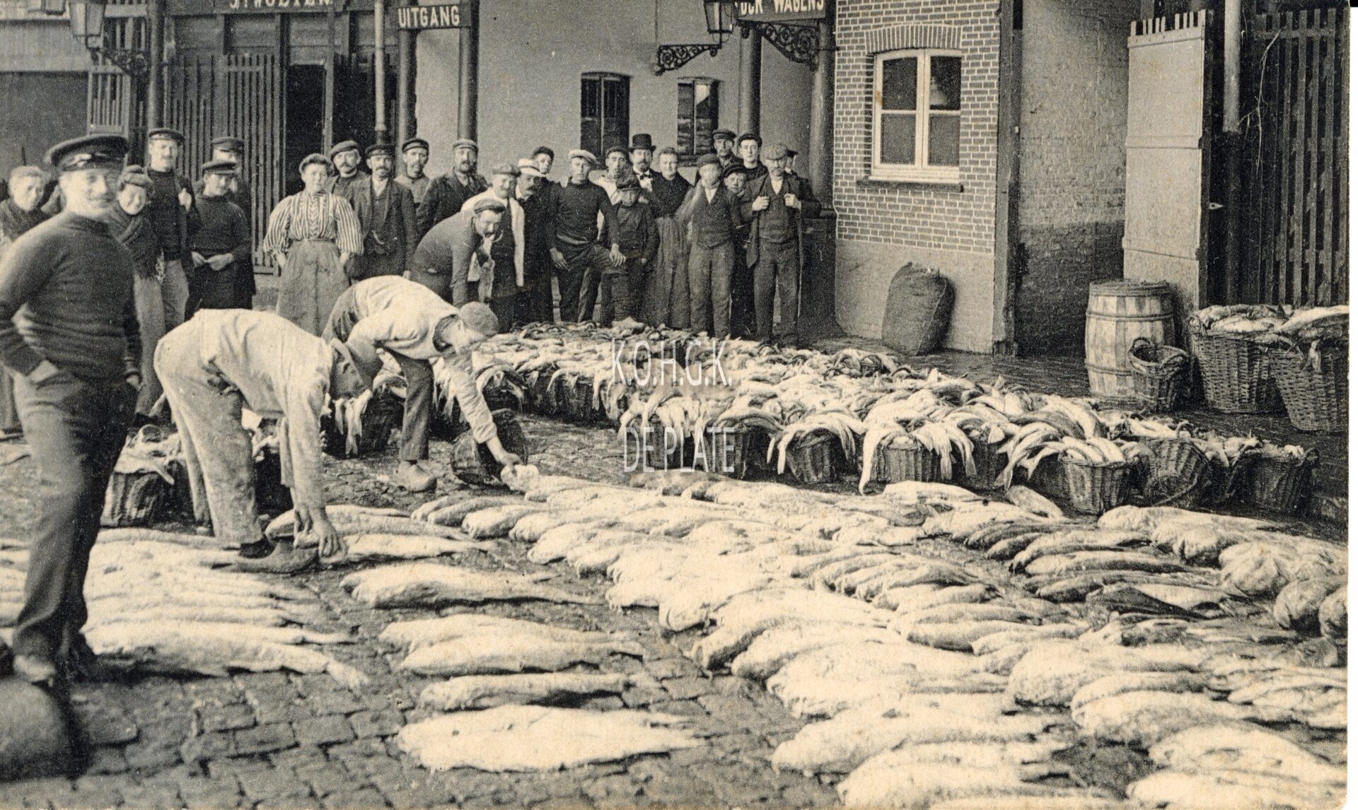 De kleine vis werd in manden gerangschikt voor de verkoop, terwijl de grote vis, zoals kabeljauw op de grond werd gelegd.