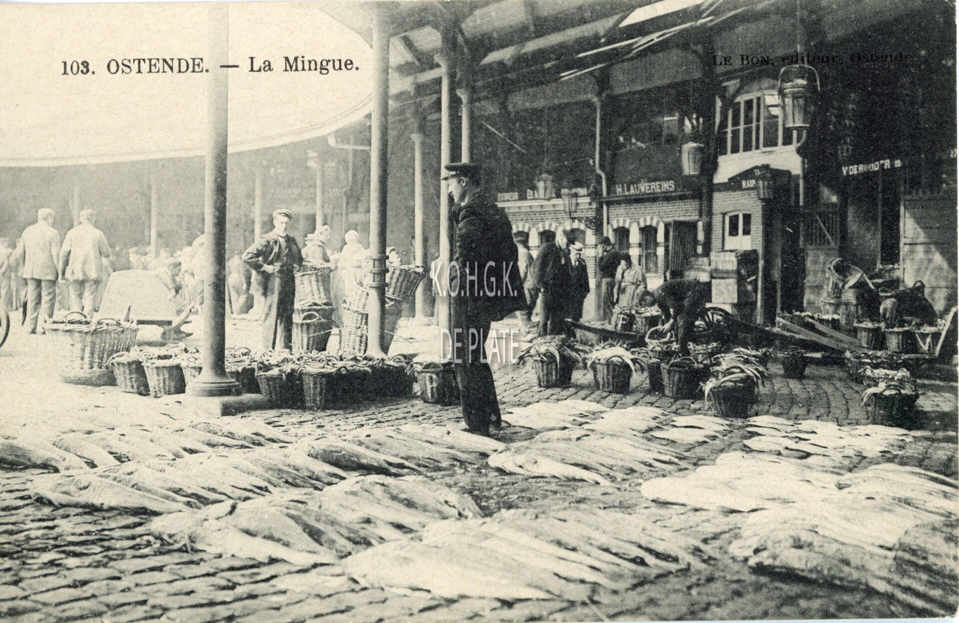 Omschrijving 103. - Ostende. La Mingue. - Visveiling in de oude vismijn Trefwoorden POSTKAARTEN VISMIJN (1879-1938) (DE CIRK) ; VISVEILING Plaatskenmerk ARCHIEF 202 08-09 POSTKAARTENARCHIEF Inventarisnummers 2011/1234 Collectie Postkaartenarchief De Plate Print
