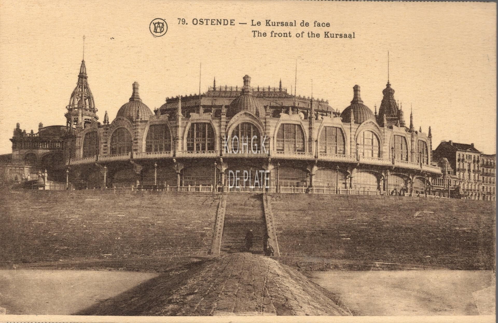 Walschaerts, N° 79. Ed. Librairie Devriendt, rue Adolphe Buyl, 33 Ostende. - Ostende - Le Kursaal de face. The front of the Kursaal. - De noordgevel van het derde Kursaal gelegen langs de Zeedijk, gezien vanop een golfbreker op het Groot Strand.