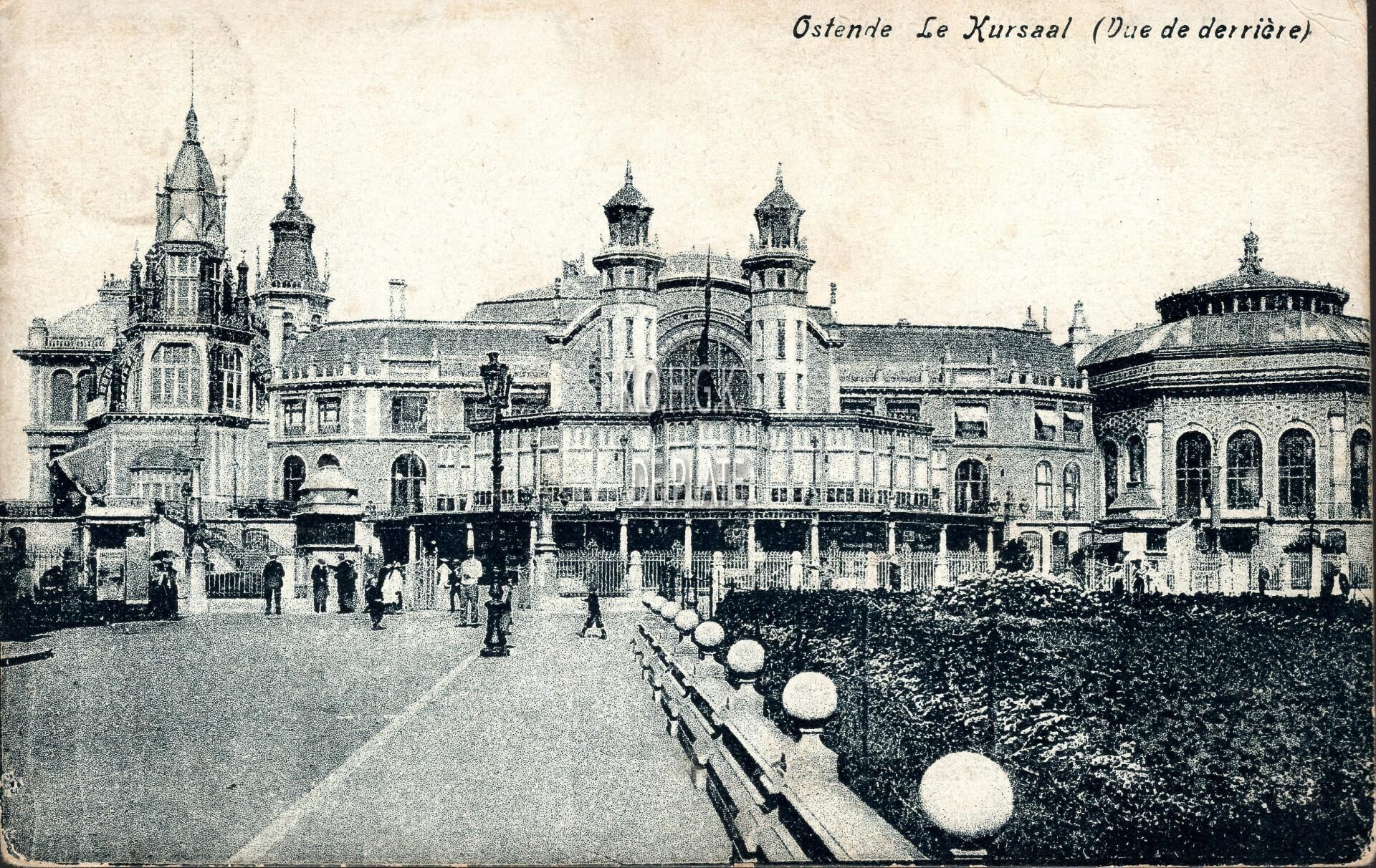 Omschrijving Ostende - Le Kursaal (Vue de derrière). - De hoofdingang vande derde Kursaal gezien vanaf de Leopoldlaan Trefwoorden POSTKAARTEN CASINO-KURSAAL (1899-1907-1943) LEOPOLDLAAN Plaatskenmerk ARCHIEF 202 08-09 POSTKAARTENARCHIEF Inventarisnummers 2021/1828 1909 Collectie Fotoarchief De Plate Print