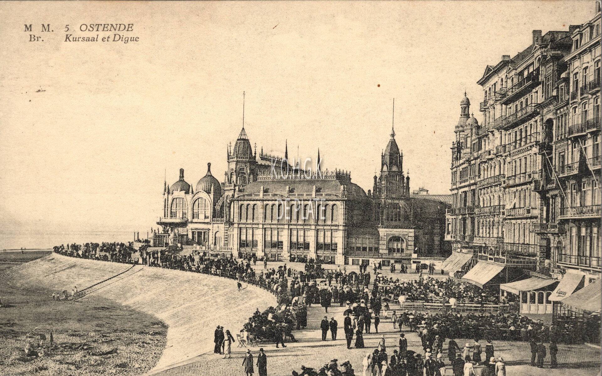 Marco Marcovici 5. - Ostende - Kursaal et Digue. - Veel volk op de Zeedijk nabij Petit Nice, met zicht op de westgevel van het derde Kursaal. Links, het Groot Strand