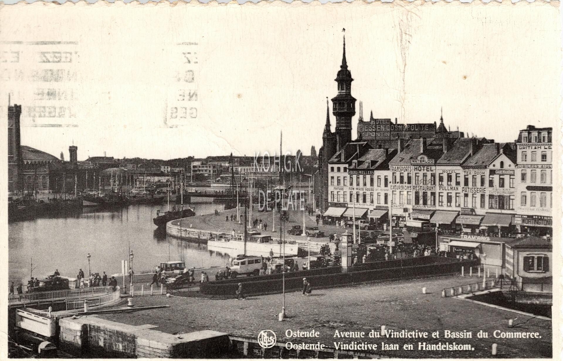 Formaat : 9 x 14 cm. - Nels. - Ostende Avenue du Vindictive et Bassin de Commerce. - Oostende Vindictivelaan en Handelskom