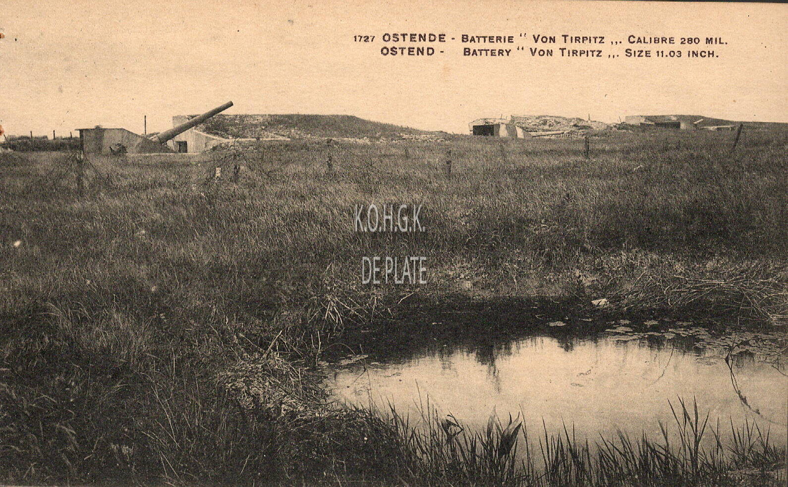 Nelson, N° 1727. Comptoir Artistique, 108, rue Victor Rauter, Bruxelles. - Ostende - Batterie "Von Tirpitz", calibre 280 mil. Ostend - Battery "Von Tirpitz", size 11.03 inch. - De batterij was gelegen langs de Elisabethlaan.