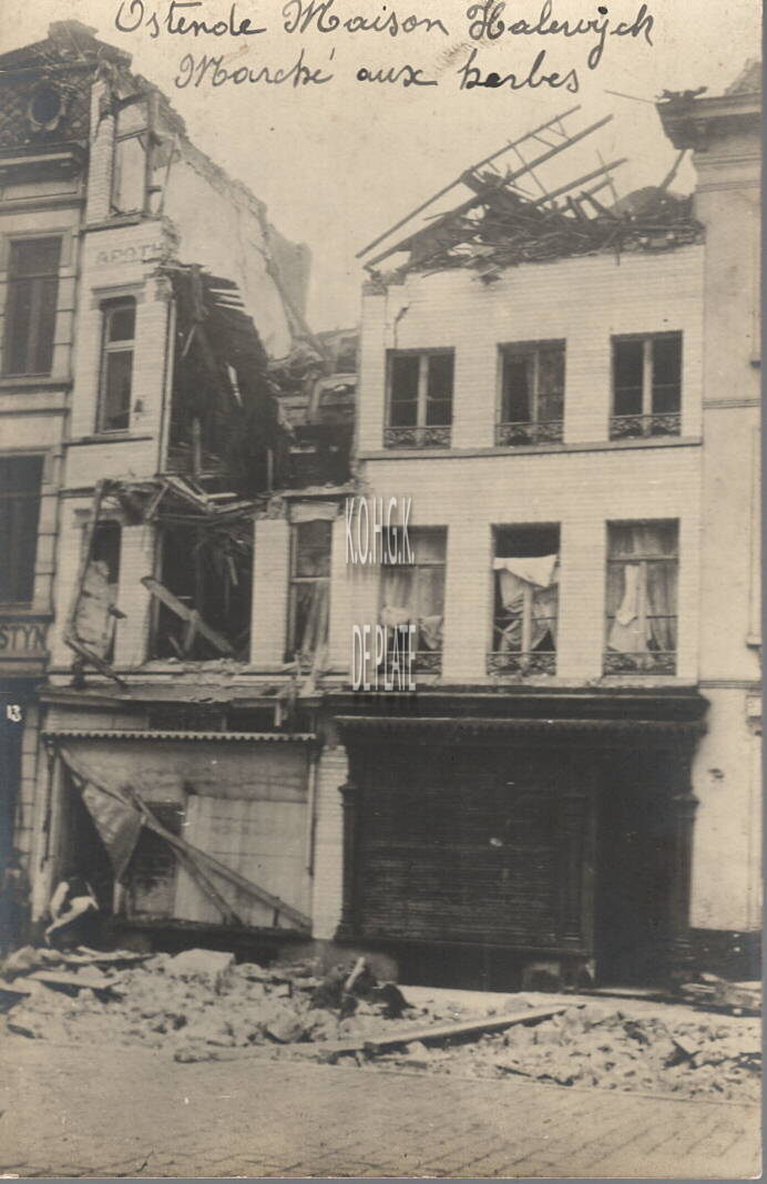 Apotheek Halewyck verloor twee verdiepingen tijdens de beschietingen van 21 maart 1918.