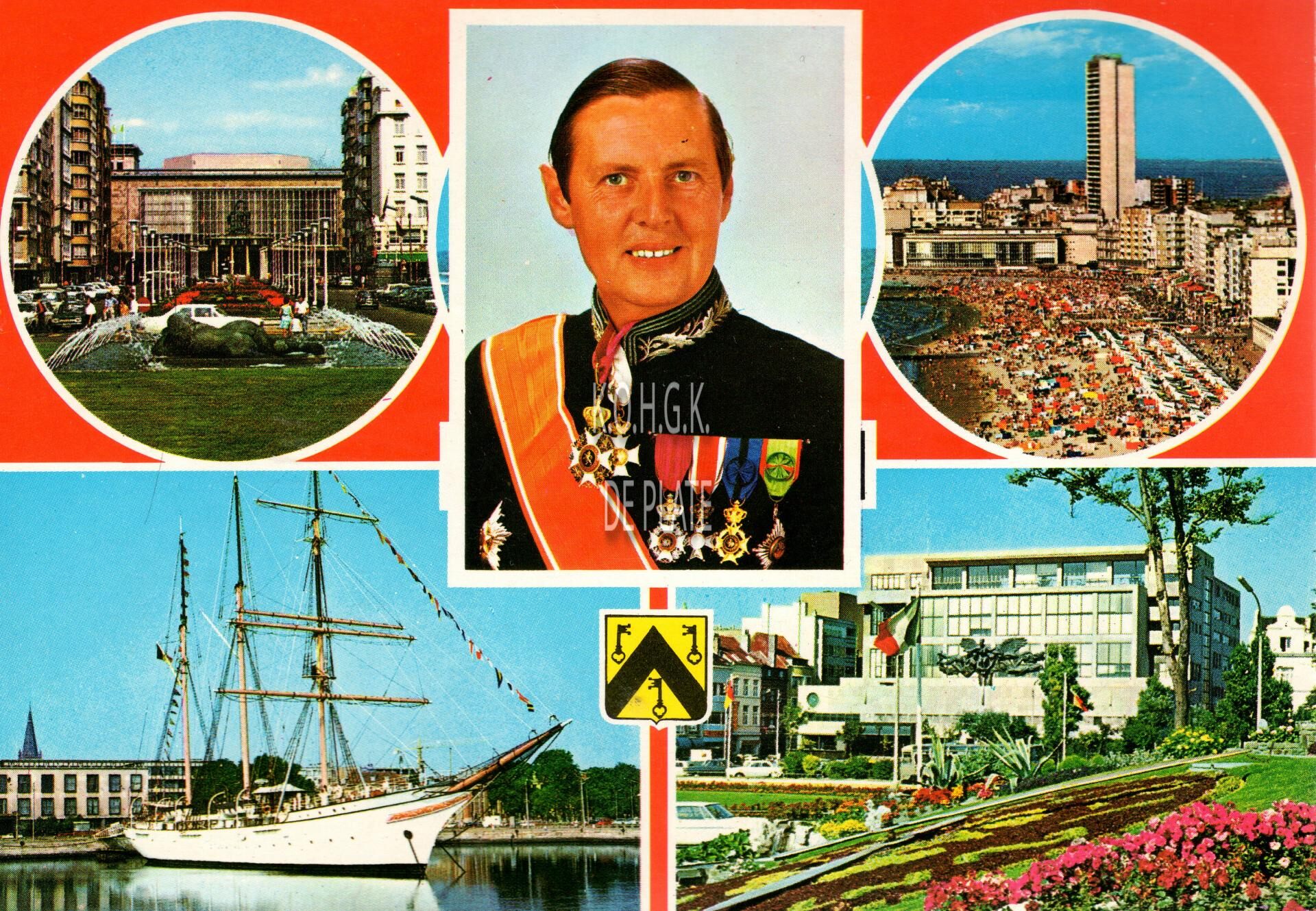 Multikaart. Inzet : Jan Piers ; Leopold II-laan ; Europacentrum ; "Mercator" (zeilschip museum) en het Postgebouw.