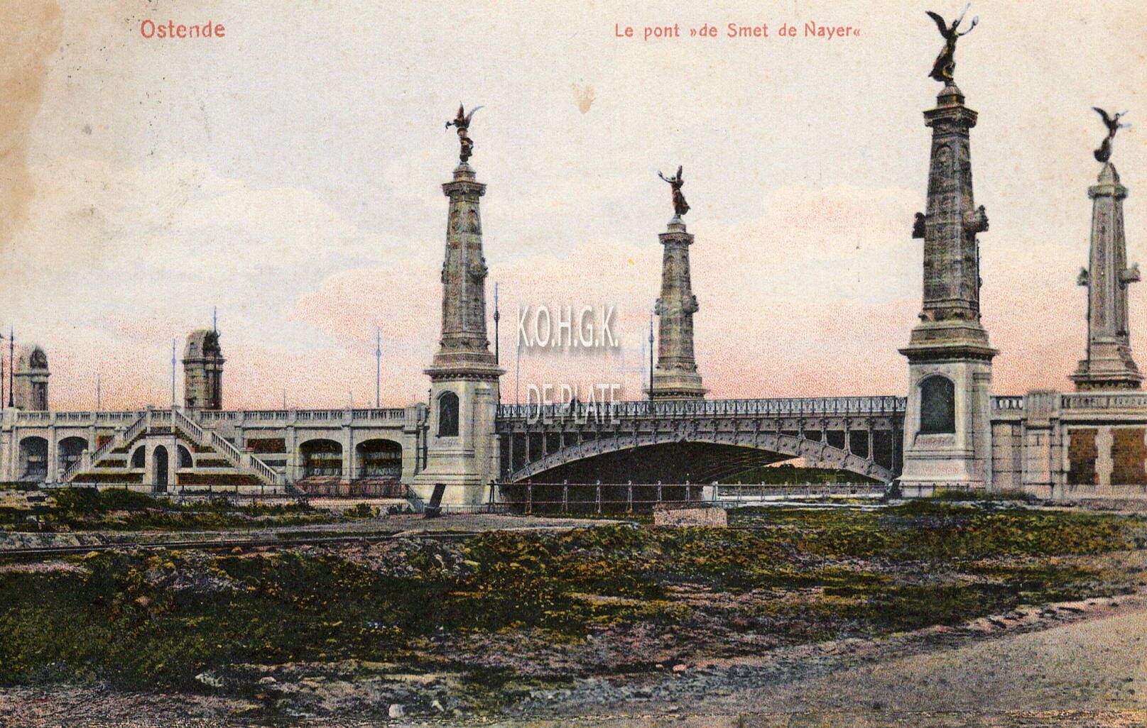 Grandes Galeries Belges, Ostende, N°3811 a. - Ostende - Le pont "de Smet de Nayer". - Bijgekleurde kaart. - We zien de Graaf de Smet de Nayerbrug over het afleidingskanaal