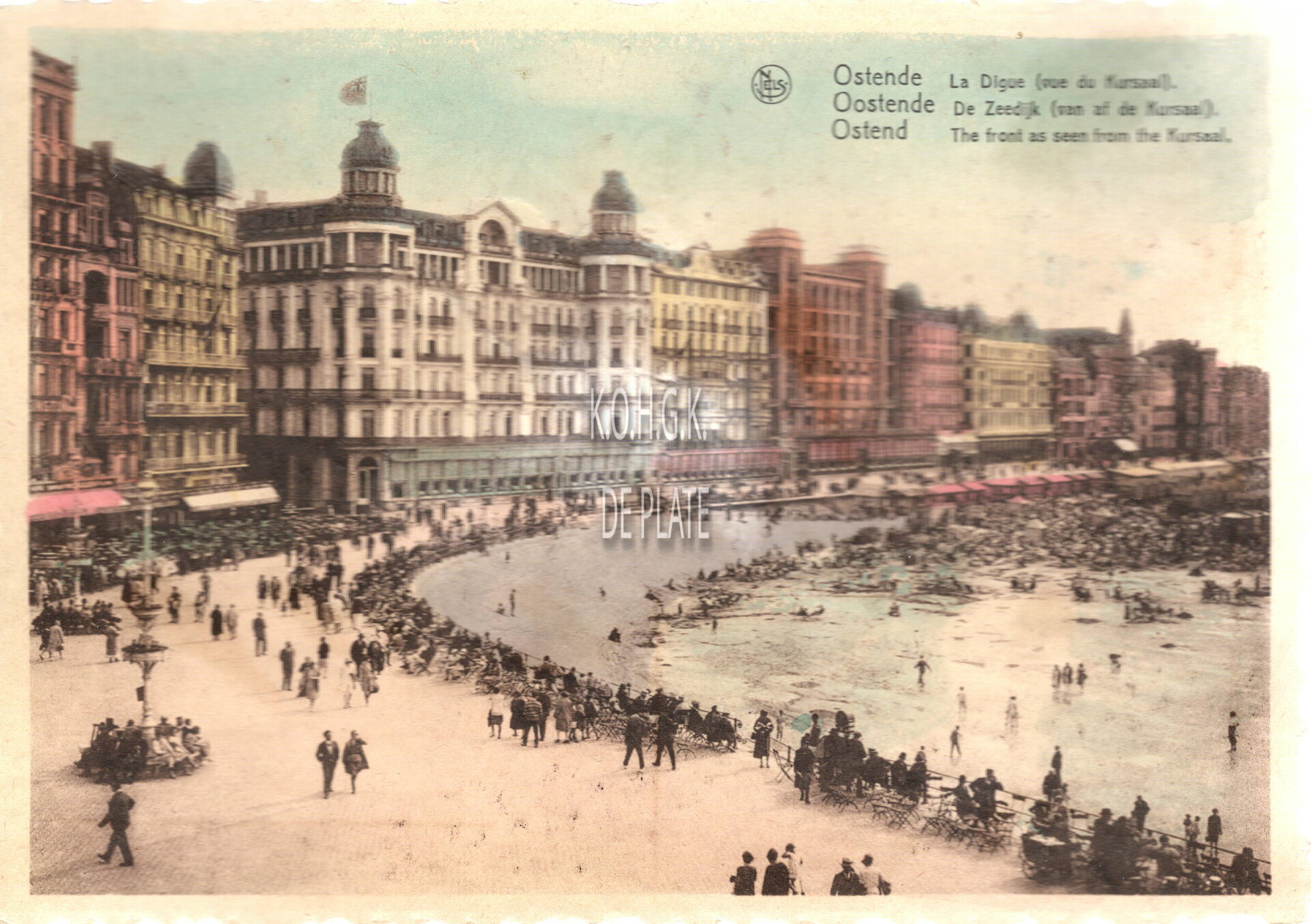 Nels. - OSTENDE La Digue (vue du Kursaal) - Oostende De Zeedijk (vanaf de Kursaal) - OSTEND The front as seen from the Kursaal. - Bijgekleurde kaart