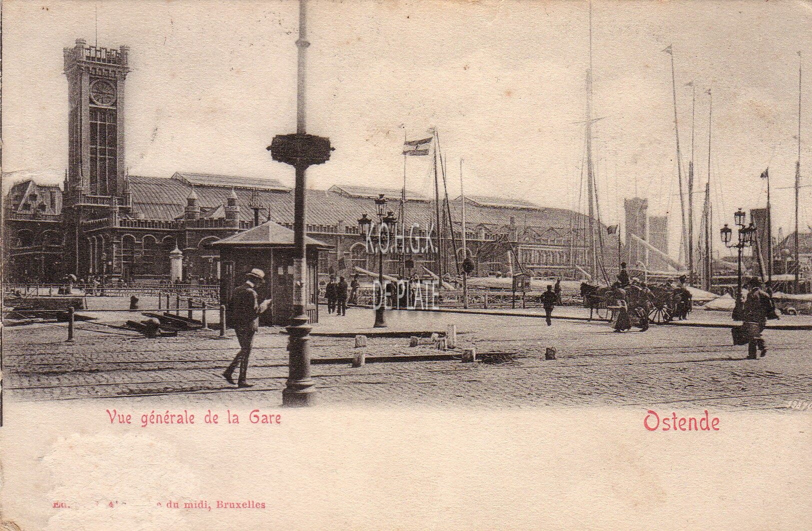 Edit. V.G. [=Victor Grégoire], 42, Avenue du Midi, Bruxelles. - Ostende - Vue générale de la Gare. Het station op het Vandersweepplein gezien vanaf Vindictivelaan