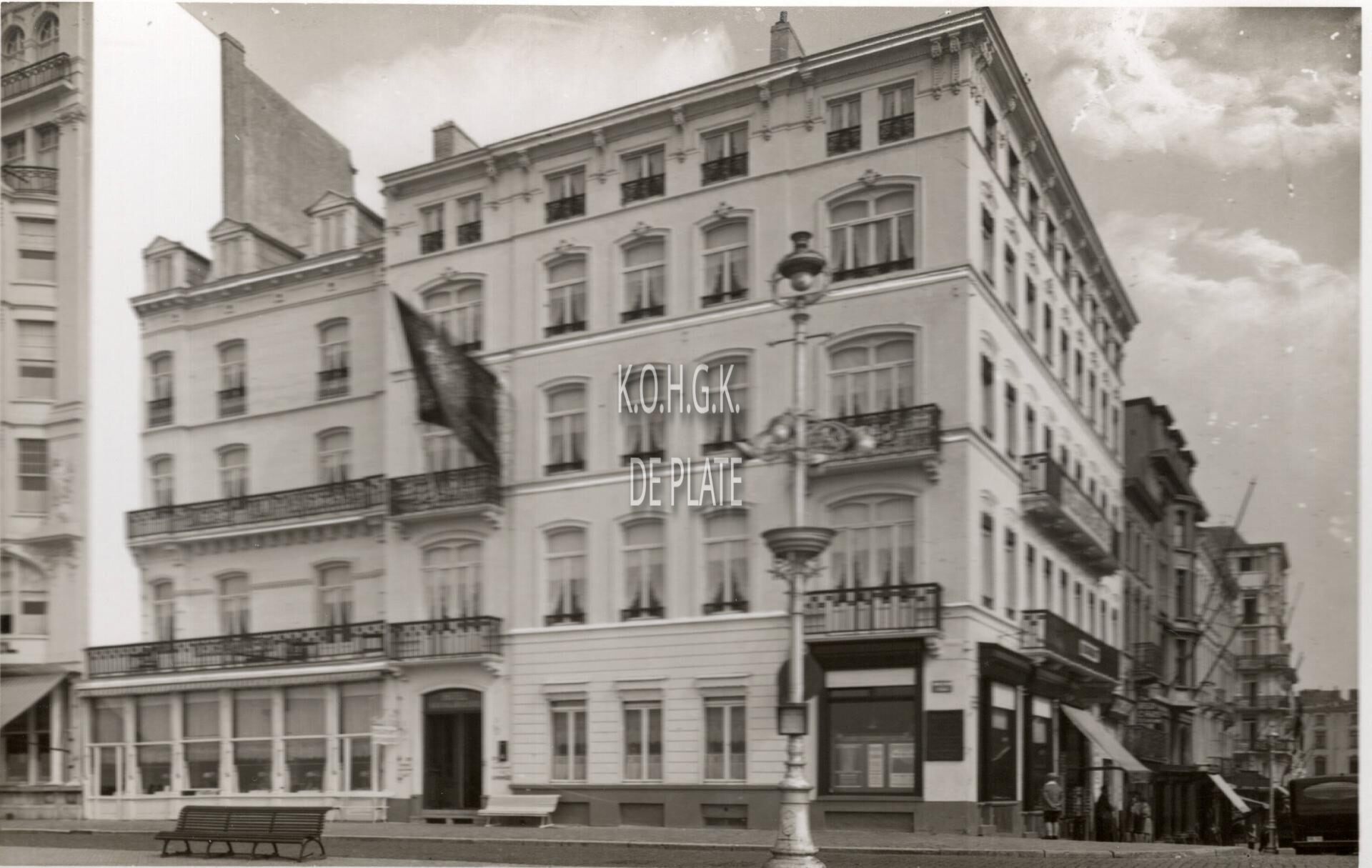 Formaat : 9 x 14 cm. - Op de hoek met de Vlaanderenstraat het reisbureau van "Thomas Cook" en in de Vlaanderenstraat het reisbureau "The Red Cars" met hun autocar.