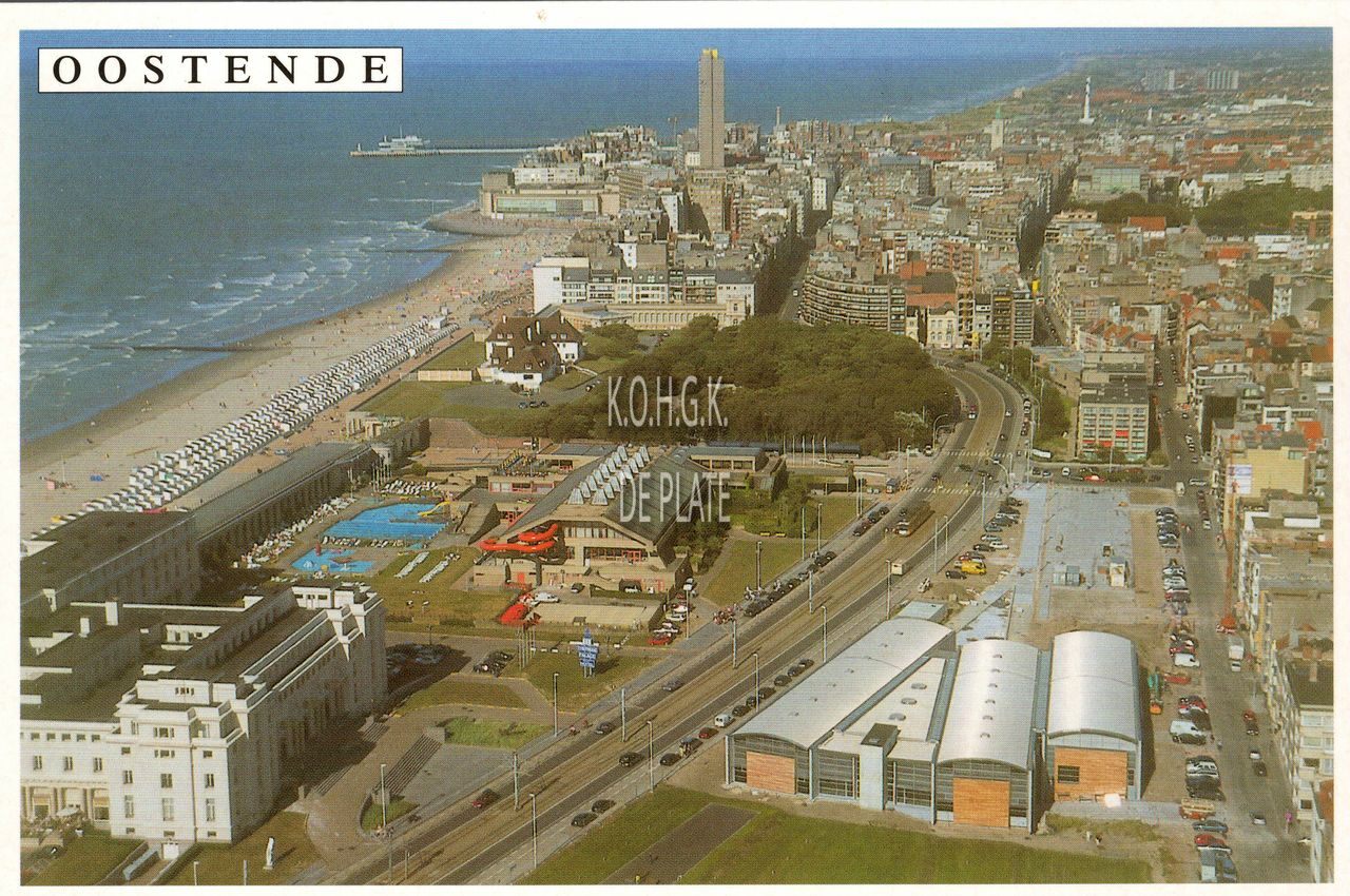 Tropic T 349. - Panorama van de omgeving van de Koningin Astridlaan. Rechts, bibliotheek Kris Lambert. Links, het Thermae Palace Hotel en ernaast het stedelijk zwembad. Wat verder de Koninklijke Villa en de Japanse tuin.