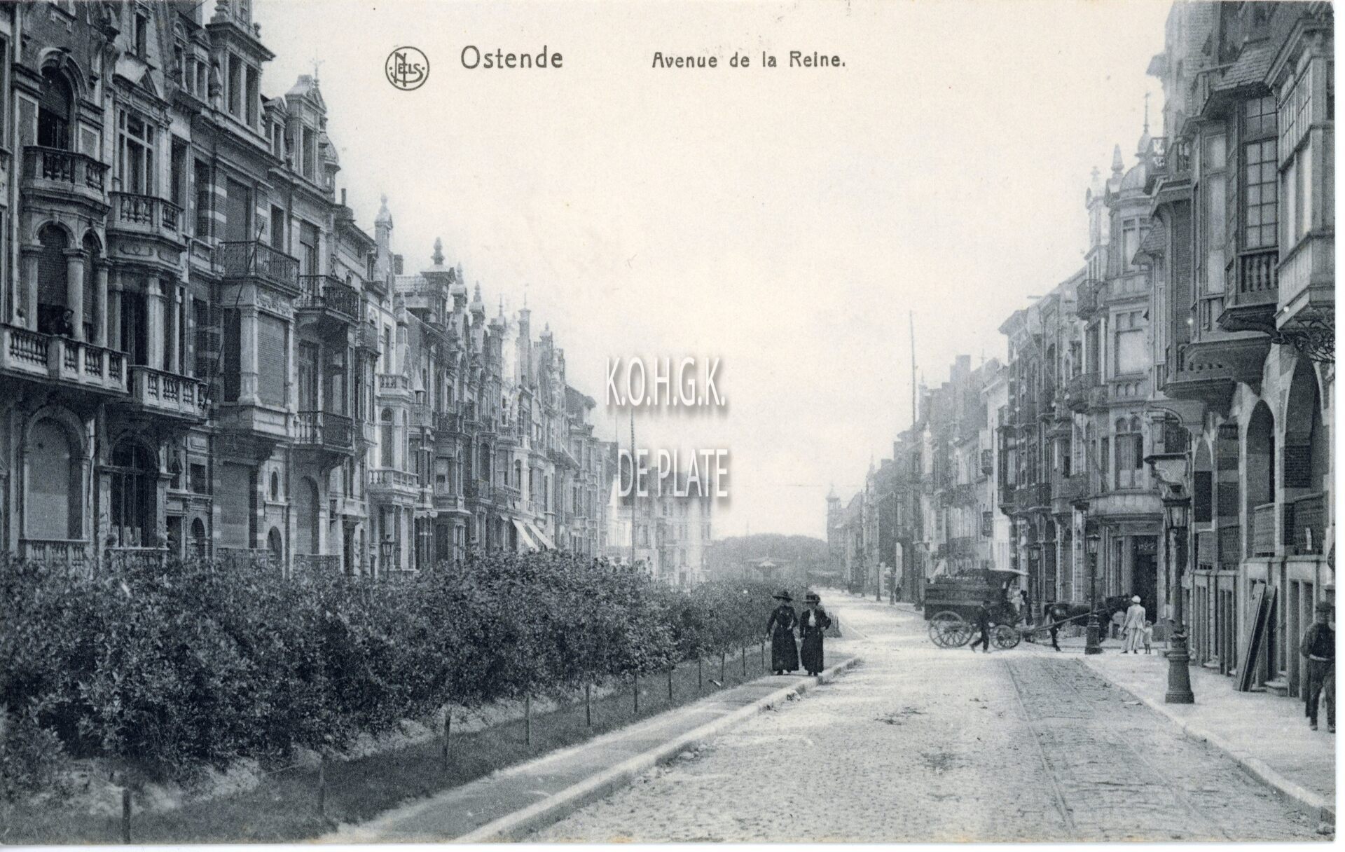 Nels, Ostende, 36. - Ostende. Avenue de la Reine. De Koninginnelaan gezien vanaf de Zeedijk richting het kruispunt Petit Paris.