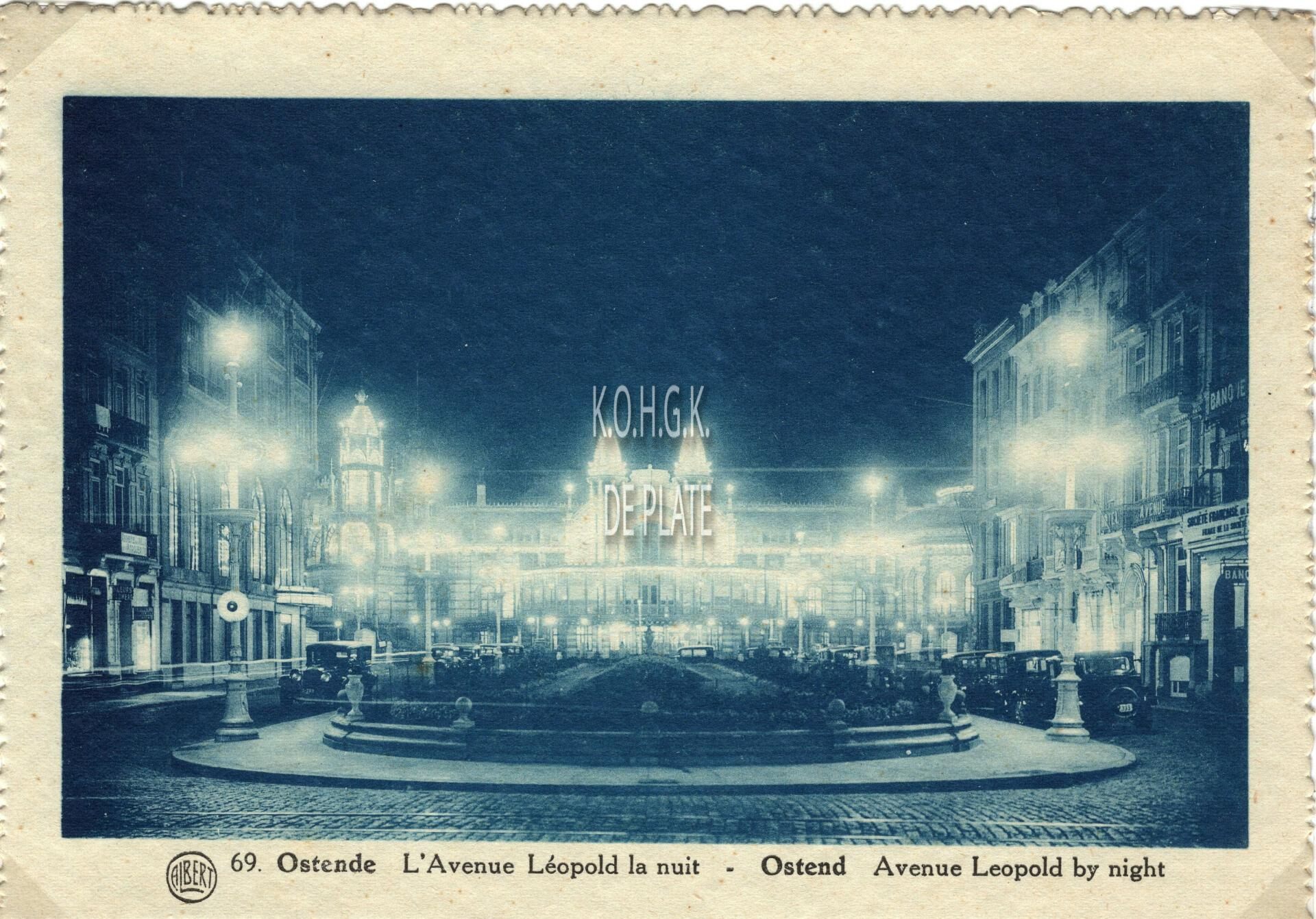 Albert Dohmen 69. - Ostende - L'Avenue Léopold la nuit. Ostend - Avenue Leopold by night. - Nachtopname van de Leopoldlaan met op de achtergrond de verlichte zuidgevel van het derde Kursaal