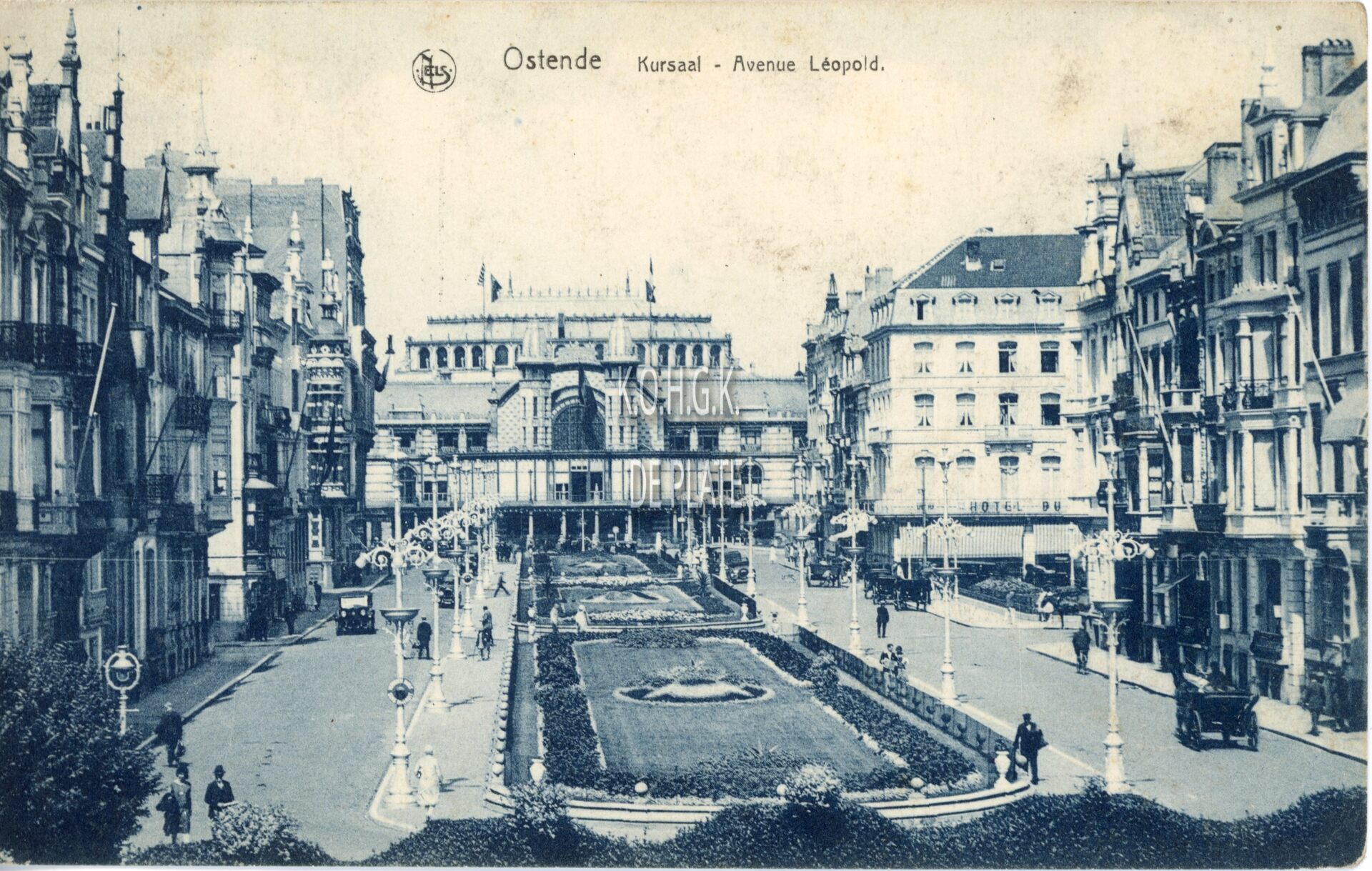 Omschrijving Nels. - Ostende - Kursaal - Avenue Léopold. Rechts het Marie-Joséplein met op de hoek Hotel du Parc. Trefwoorden POSTKAARTEN NELS CASINO-KURSAAL (1899-1907-1943) LEOPOLDLAAN MARIE-JOSEPLEIN HOTEL DU PARC (HOTEL CAFE) BLOEMENPERKEN STRAATVERLICHTING ; LANTAARNS Plaatskenmerk ARCHIEF 202 08-09 POSTKAARTENARCHIEF Inventarisnummers 2011/1239 Collectie Postkaartenarchief De Plate Uitgever Nels (Brussel/Bruxelles) Print