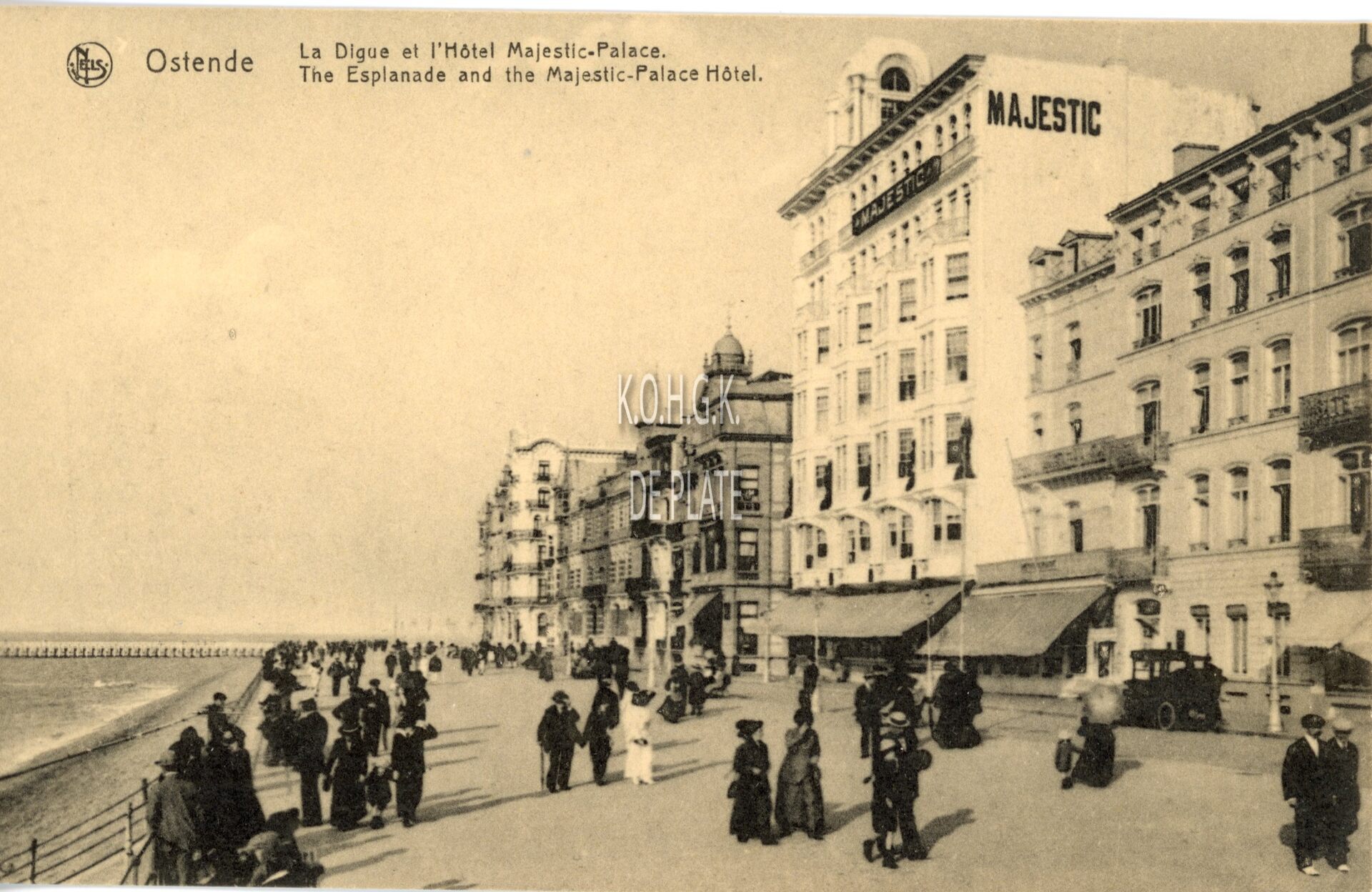 Omschrijving Nels. - Ostende - La Digue et l'Hôtel Majestic-Palace. Ostend - The Esplanade and the Majestic-Palace Hotel Trefwoorden POSTKAARTEN NELS MAJESTIC PALACE (HOTEL) HOTELS (OUDE) ZEEDIJK MODE ; 20E EEUW Plaatskenmerk ARCHIEF 202 08-09 POSTKAARTENARCHIEF Inventarisnummers 2011/1531 Collectie Postkaartenarchief De Plate Herkomst AANKOOP Uitgever Nels (Brussel/Bruxelles) Print