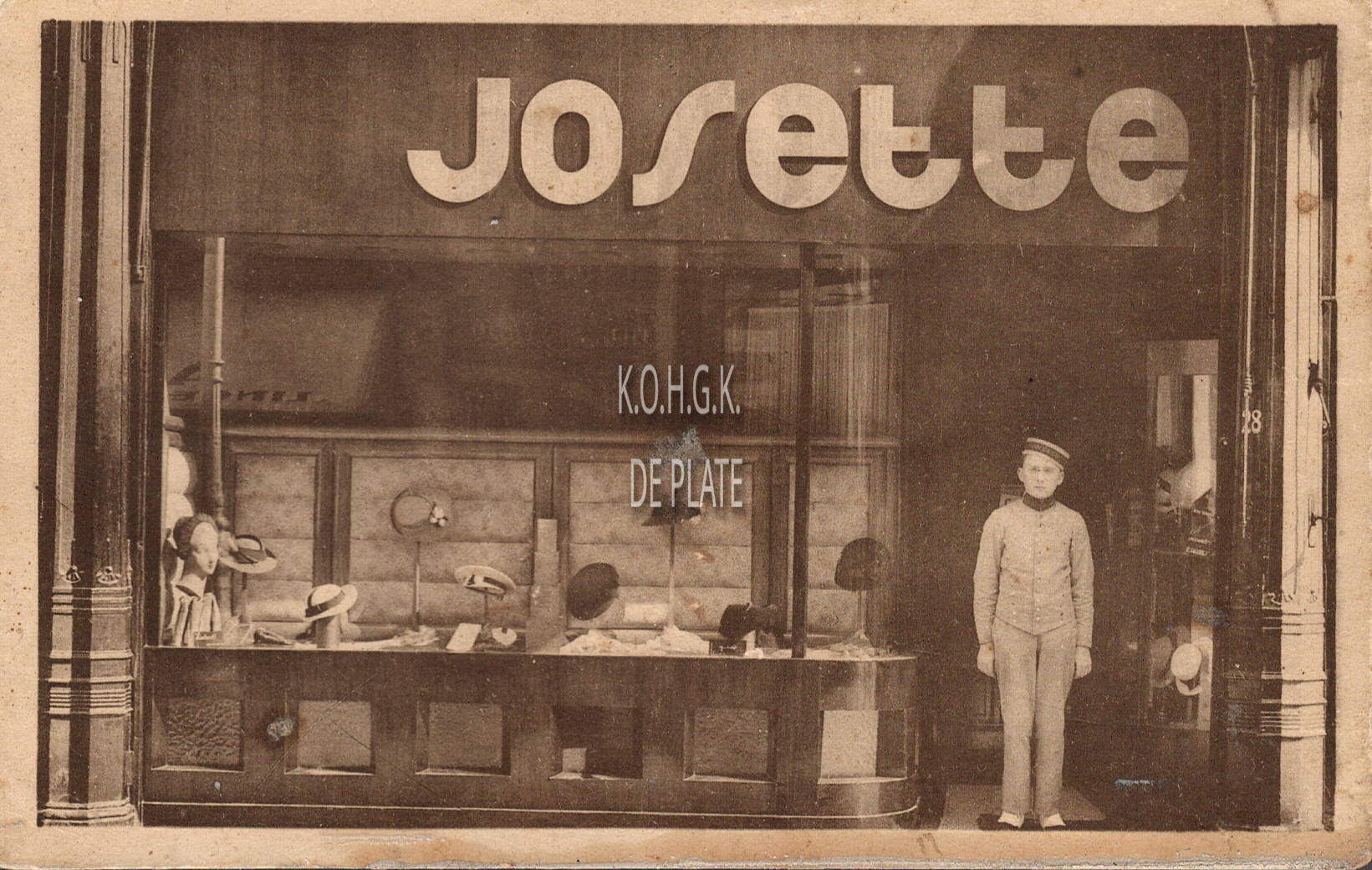 Omschrijving Legia. - Un chapeau chic élégant est signé JOSETTE-modes - 28, Rue ad. Buyl OSTENDE. Trefwoorden POSTKAARTEN MODES JOSETTE (HOEDENZAAK) HANDEL ; HOEDEN ADOLF BUYLSTRAAT HANDELSZAKEN Plaatskenmerk ARCHIEF 202 08-09 POSTKAARTENARCHIEF Inventarisnummers 2002/0312 Collectie Postkaartenarchief De Plate Herkomst BENS-DEMEY JOSETTE Uitgever Legia Print