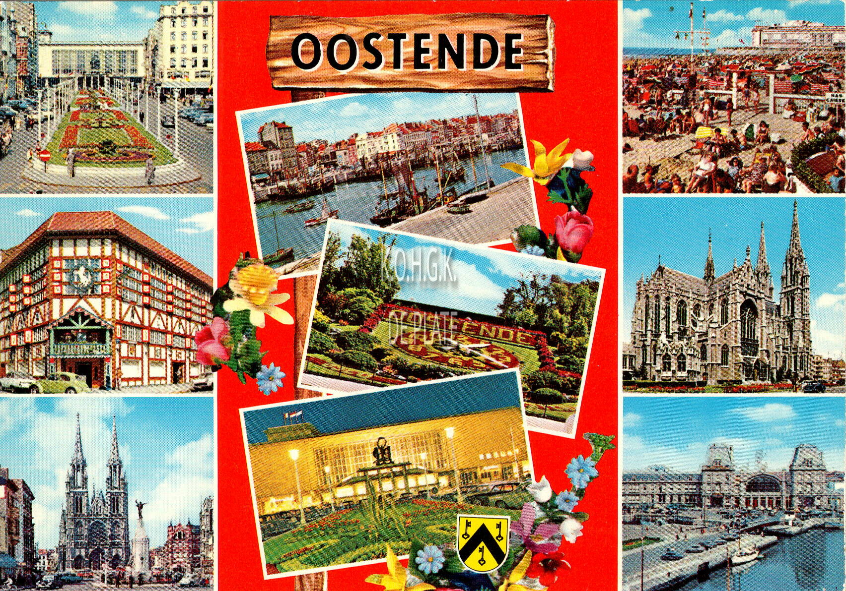 Krüger, N° 933/123. - Inzet : Leopold II-laan ; Feestzaal "In 't Witte Paard" ; De Sint Petrus en Pauluskerk (2 afb.) ; Montgomerydok ; Bloemenuurwerk ; Vierde Kursaal : Strandrecreatie op het Groot Strand ; Het Zeestation