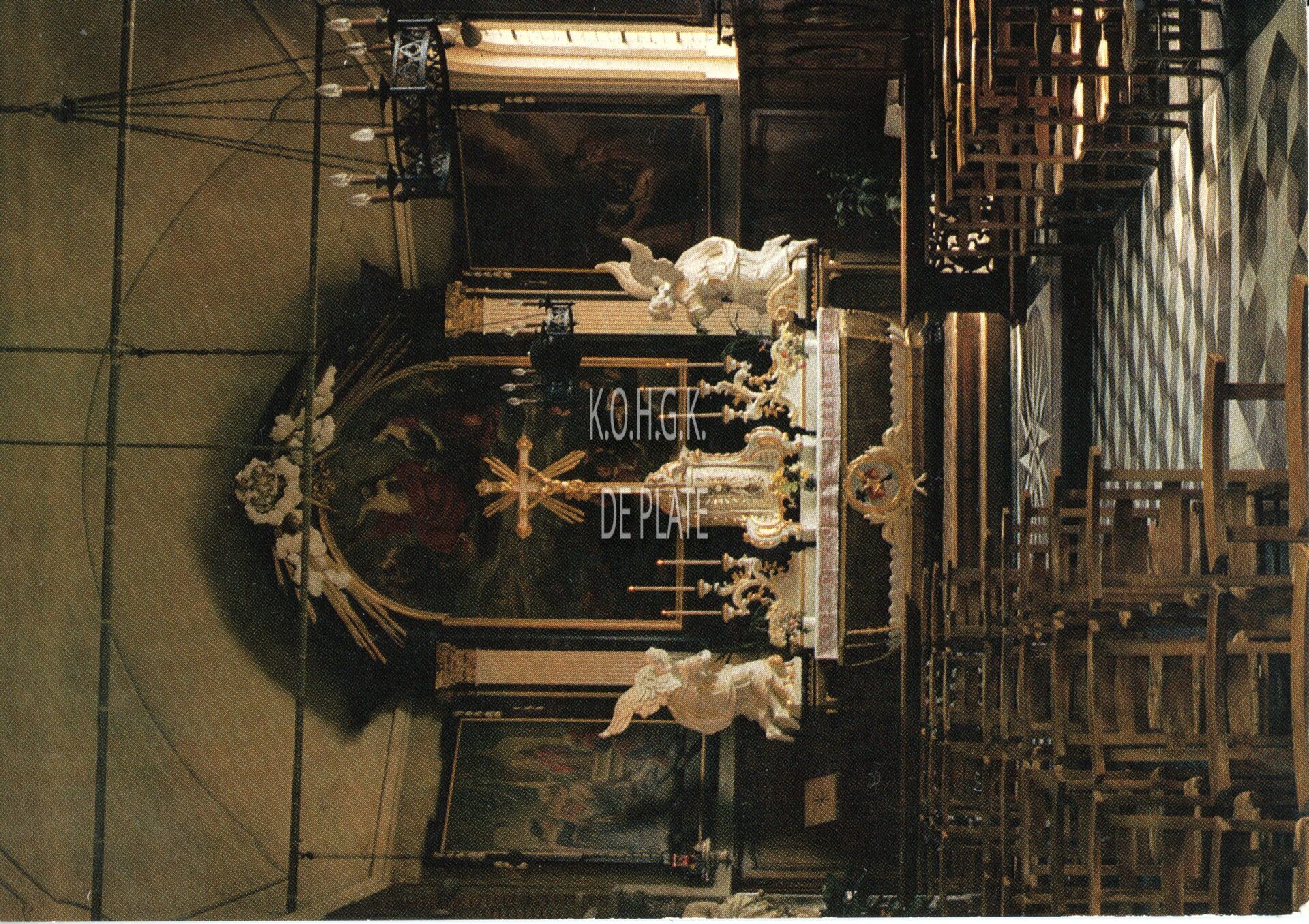 Omschrijving De hoofdbeuk en hoogaltaar Trefwoorden POSTKAARTEN ONZE-LIEVE-VROUW-TER DUINEN (DUINENKERK) ; INTERIEUR RELIGIEUZE GEBOUWEN ; MEUBILAIR RELIGIEUZE VOORWERPEN RELIGIEUZE KUNST INTERIEURS Plaatskenmerk ARCHIEF 202 08-09 POSTKAARTENARCHIEF Inventarisnummers 2016/1604 Collectie Postkaartenarchief De Plate Herkomst DREESEN JAN Vervaardiger Behr Gil (Oostende) Print