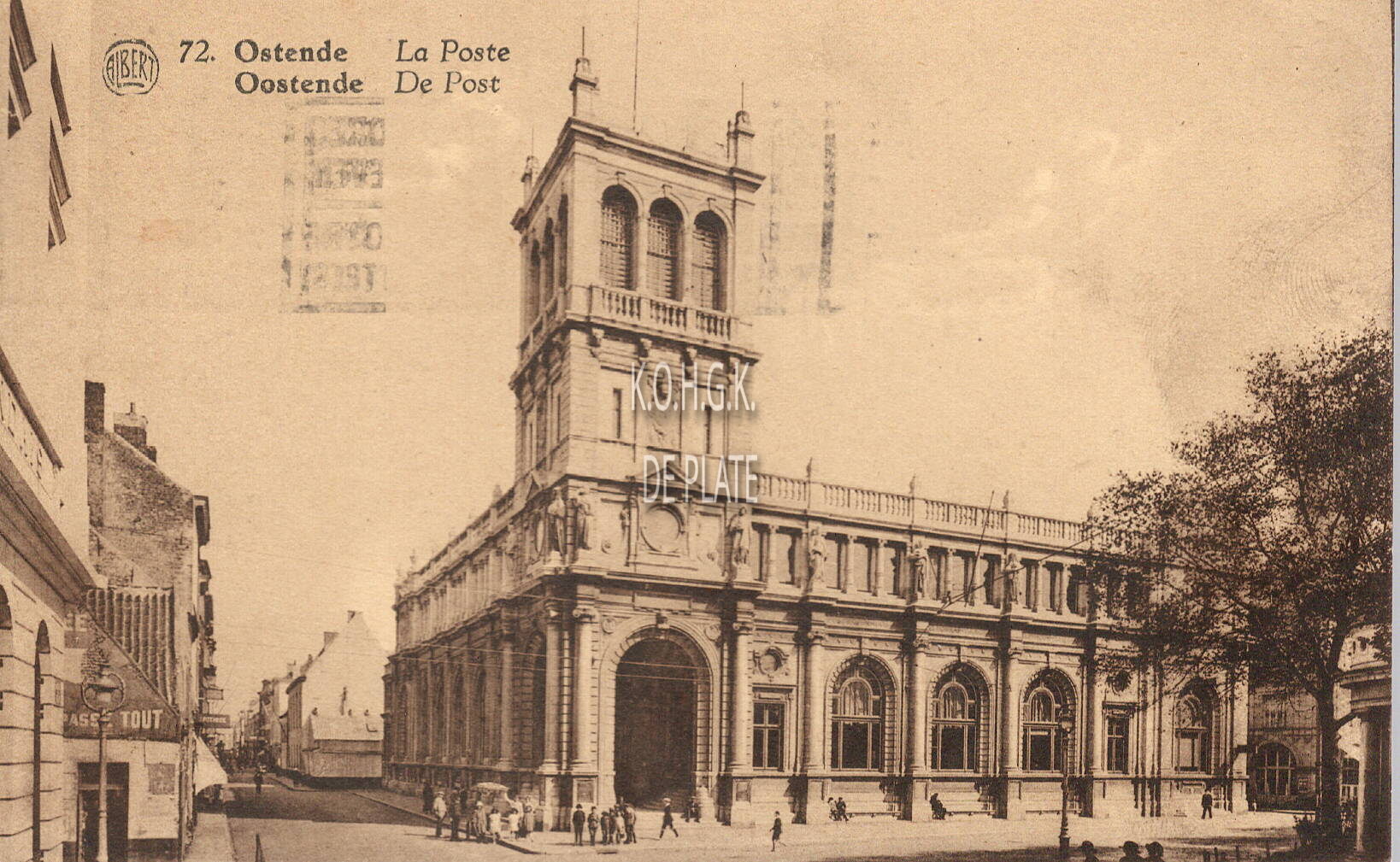 Albert, nr. 72. - Ostende - La Poste. - Oostende - De Post. Het oude postgebouw in de Hendrik Serruyslaan, gebouwd in 1906, naar de plannen van architect Charles De Wulf. Links, de Wittenonnenstraat.