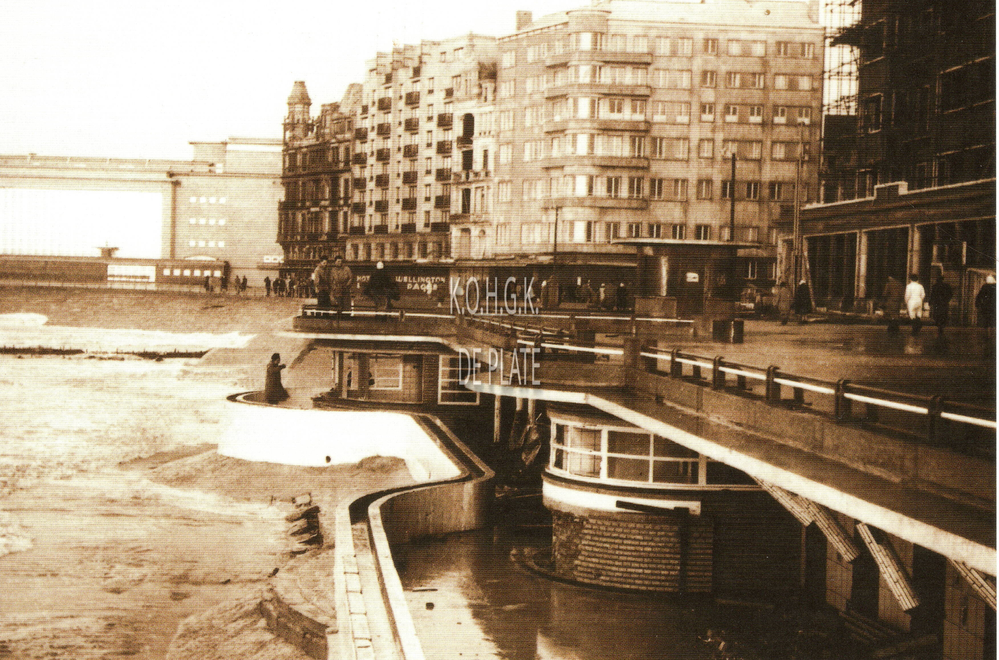 Tropic T 393. - Ostende oender woater 1953. - De Badinstallaties onder de Albert I-promenade. Links, het Groot Strand en op het einde, de westgevel van de vierde Kursaal