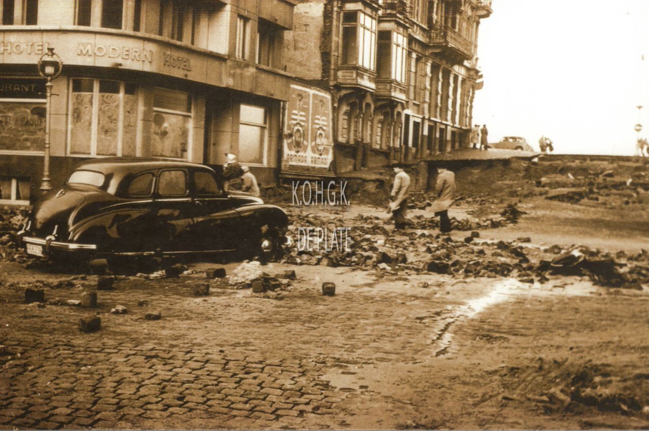 Omschrijving Tropic T 391. - Ostende oender woater 1953. - De hoek van de Kapucijnenstraat en de Van Iseghemlaan. Op de hoek, het "Modern Hotel" Trefwoorden POSTKAARTEN TROPIC OVERSTROMING 1953 KAPUCIJNENSTRAAT VAN ISEGHEMLAAN HOTELS (OUDE) Plaatskenmerk FOTOARCHIEF 202 D1 TROPIC MAP 5 Inventarisnummers 2003/1050 Collectie Fotoarchief De Plate Uitgever Photo Tropic Oostende Print