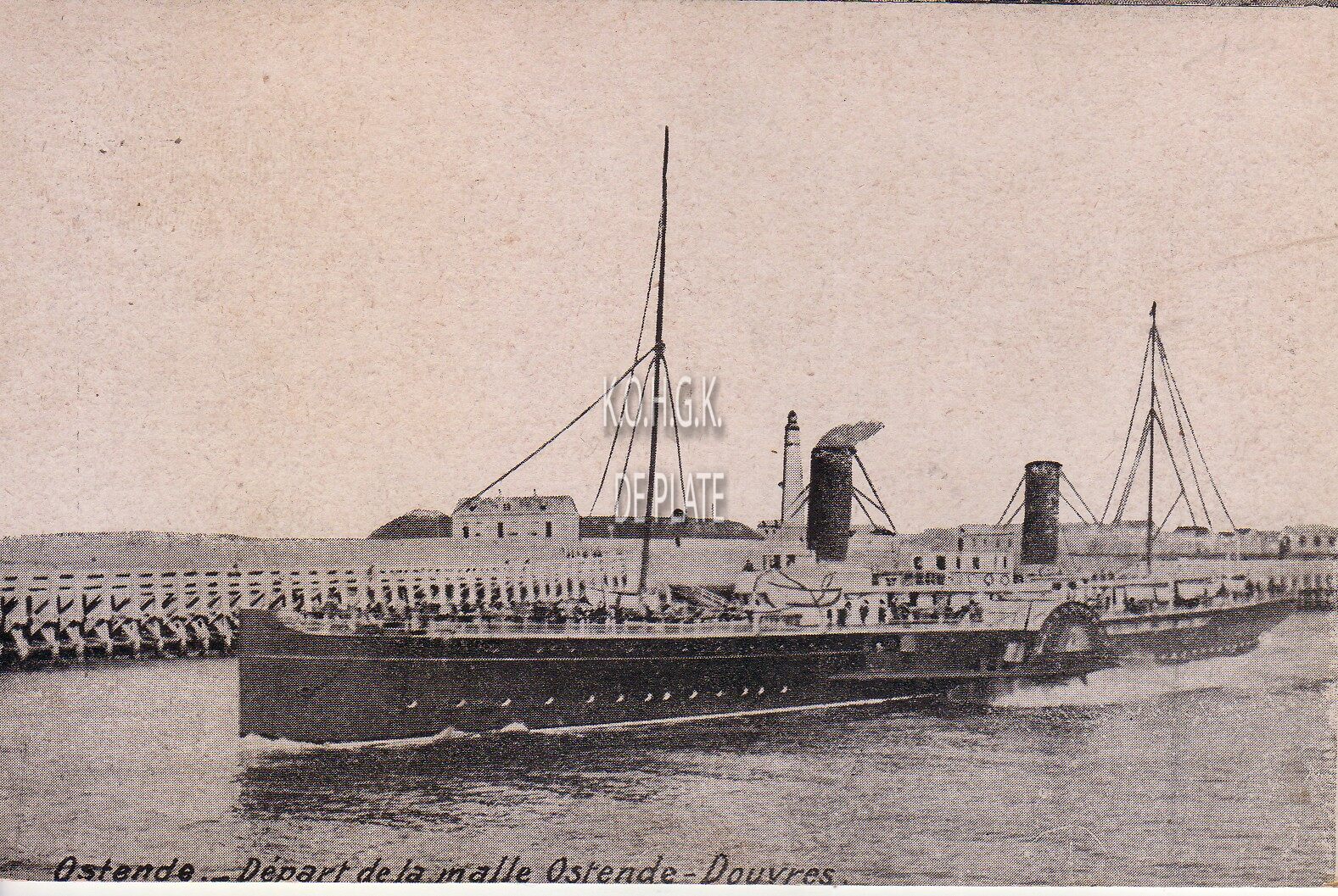Edit. V.G. [=Victor Grégoire], avenue du Pidi, Bruxelles. - Ostende - Départ de la malle Ostende-Douvres. - De raderstoomboot "Marie-Henriette" in de havengeul van Oostende. We zien het ooststaketsel en de tweede vuurtoren.